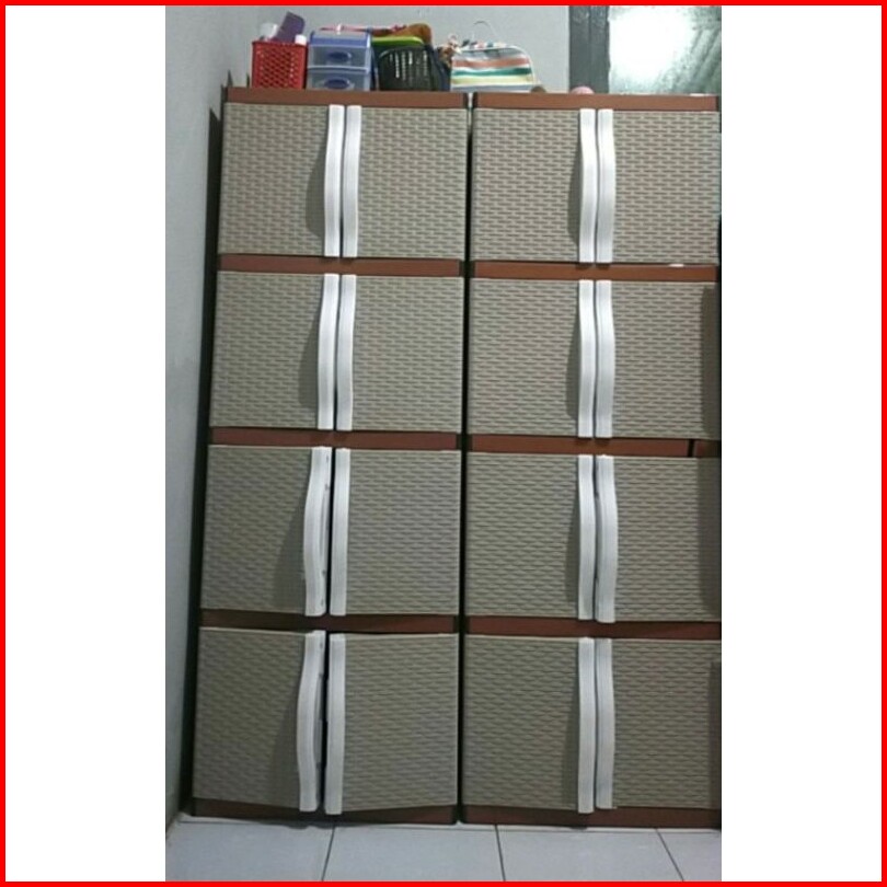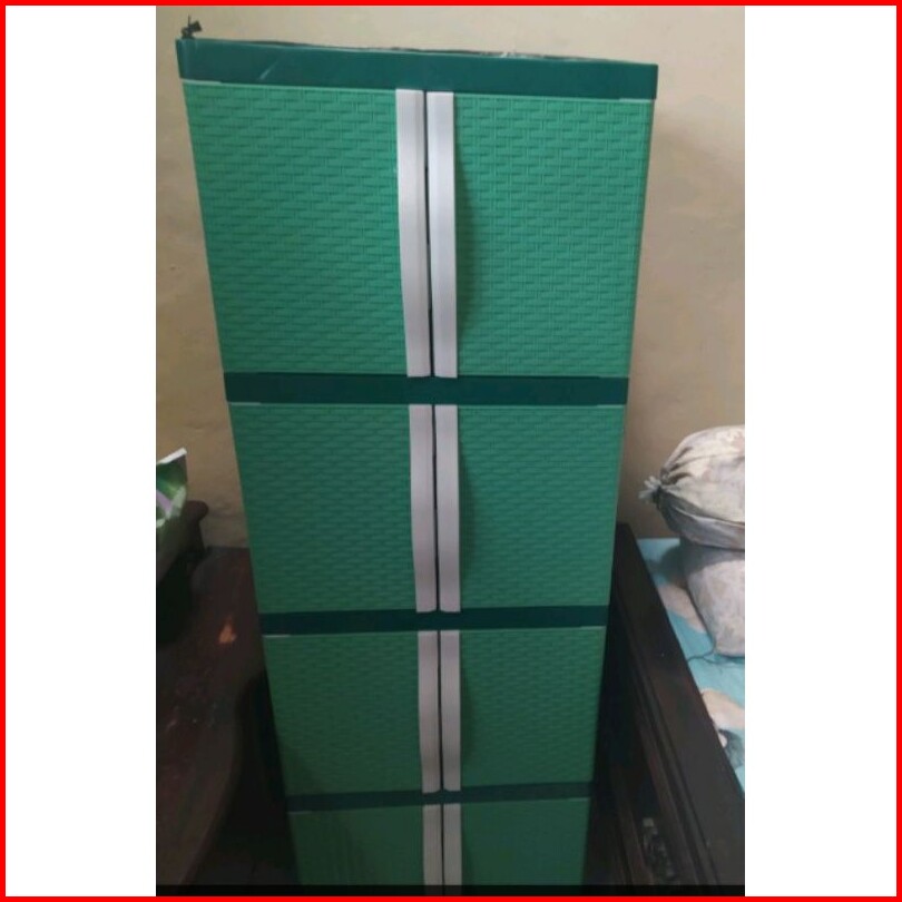 Lemari Plastik Mini Club Rotan 4 Susun Pintu Putih
