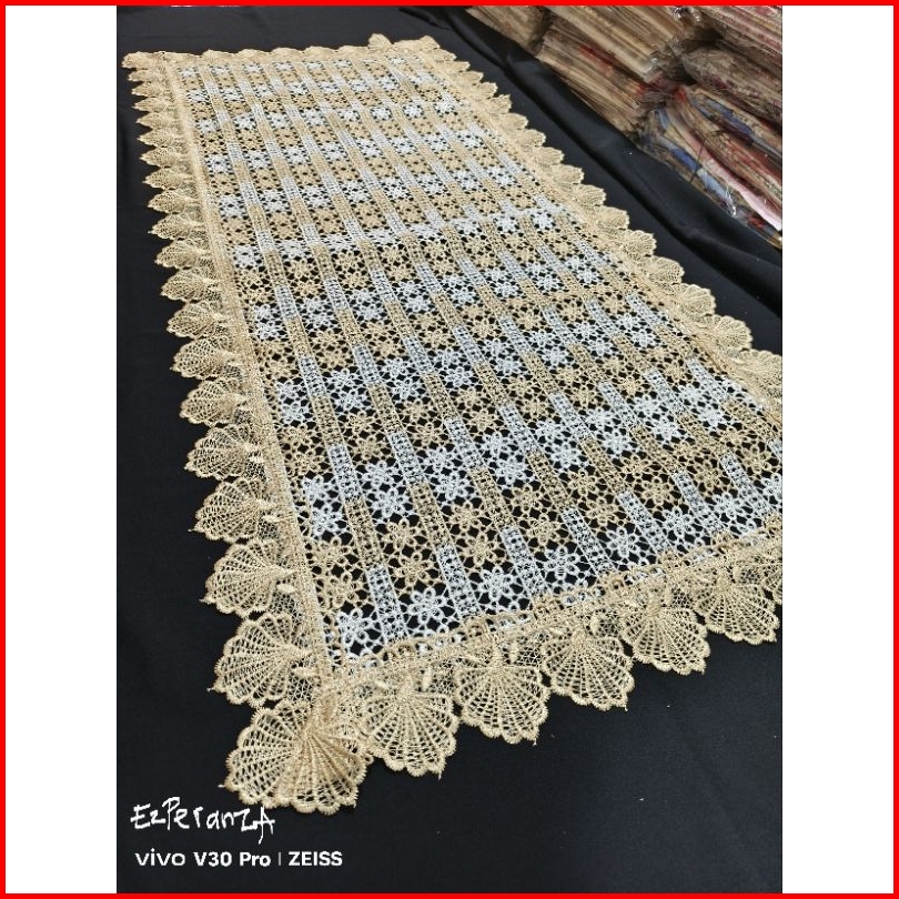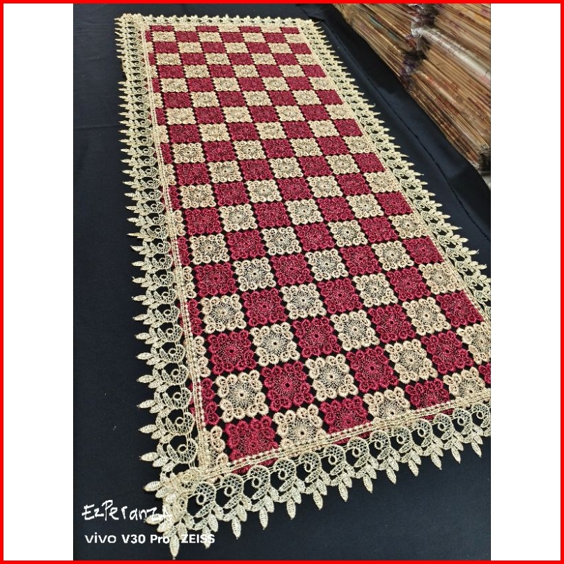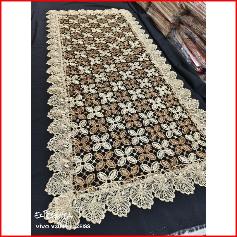 Taplak Meja Tamu Renda Brukat 50 X 110 Cm Mewah Elegant Vintage Import