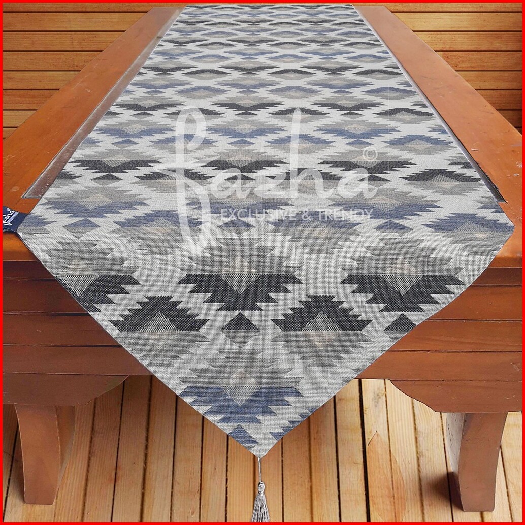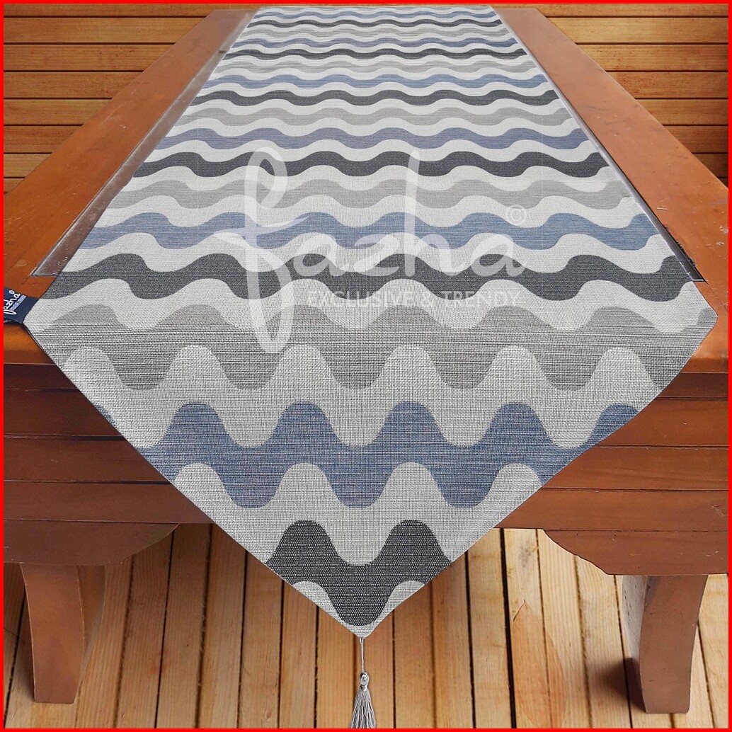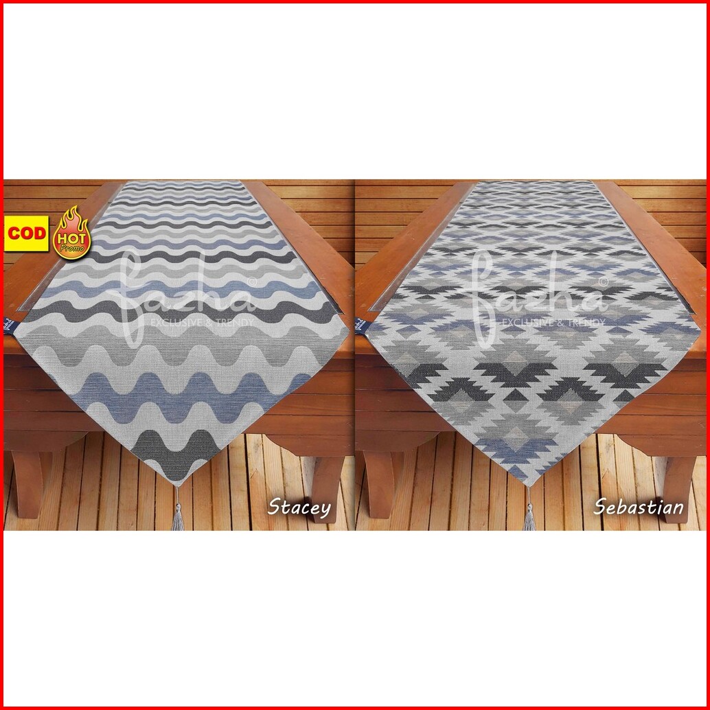Taplak Meja Tamu Makan Modern Minimalis Fazha Mewah Cantik Elegant Motif Geomertis Warna Abu Biru Hitam Tua 30x120 30x13