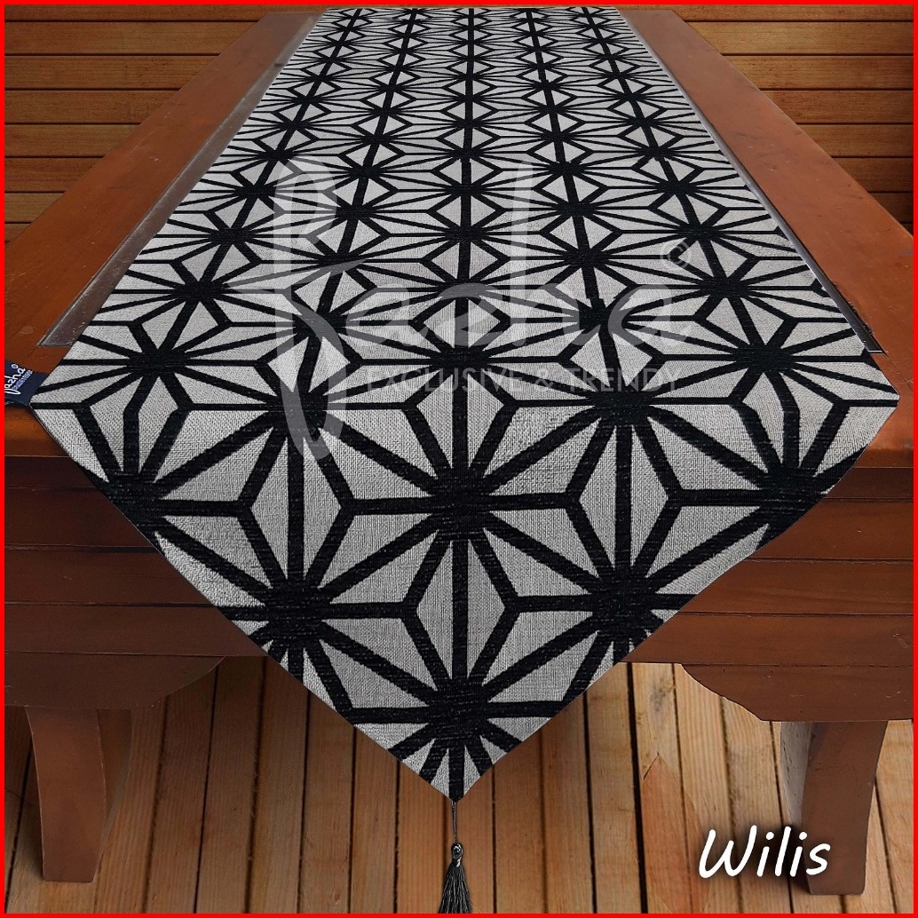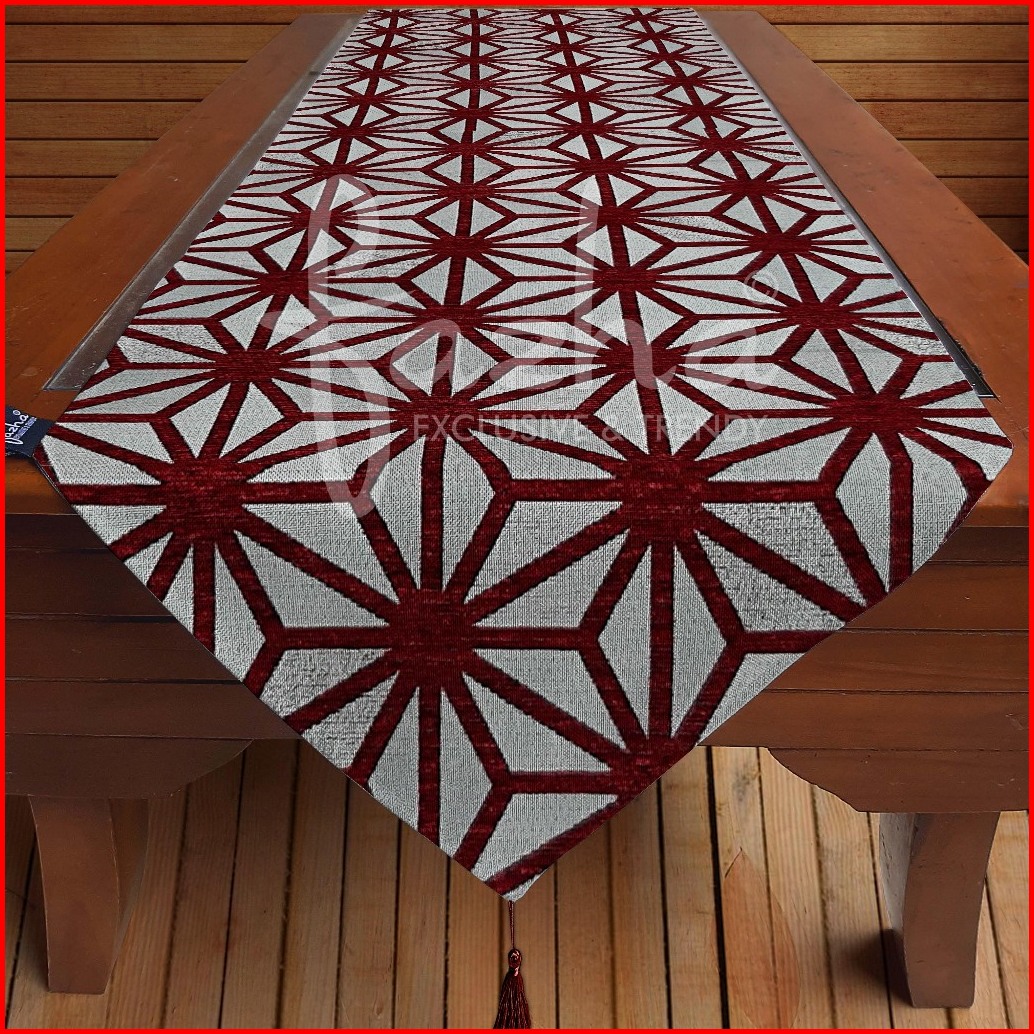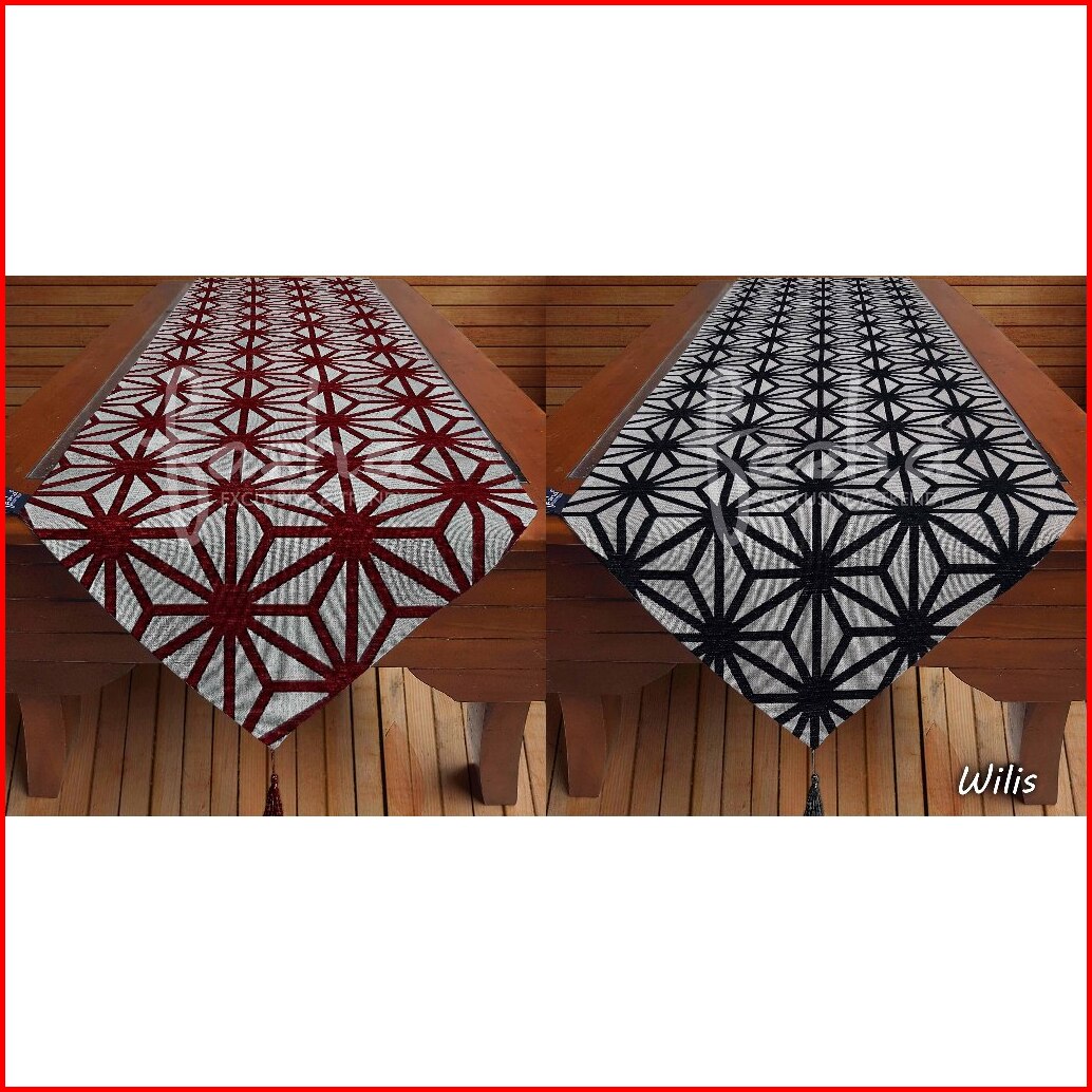 Taplak Meja Tamu Makan Modern Minimalis Mewah Cantik Elegant Motif Geomertis Warna Hitam Merah Maroon Marun 30x120 30x13