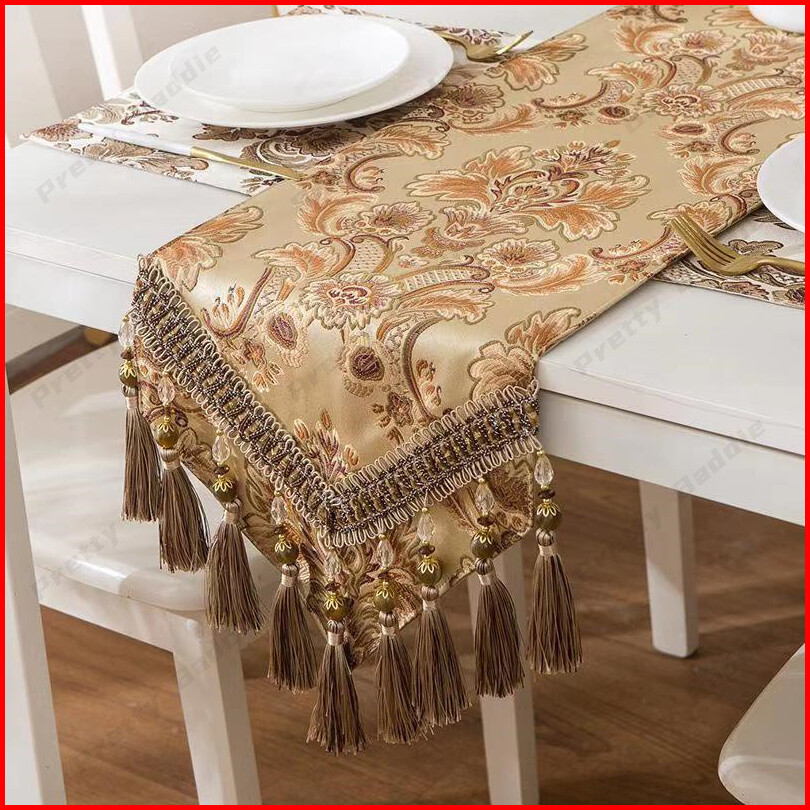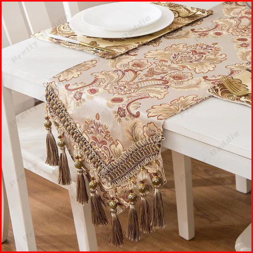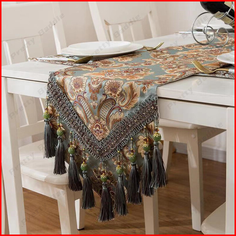 Taplak Meja Persegi Panjang Gaya Istana Retro Kerajinan Kelas Berat Bendera Meja European Table Runner Taplak Meja Tamu