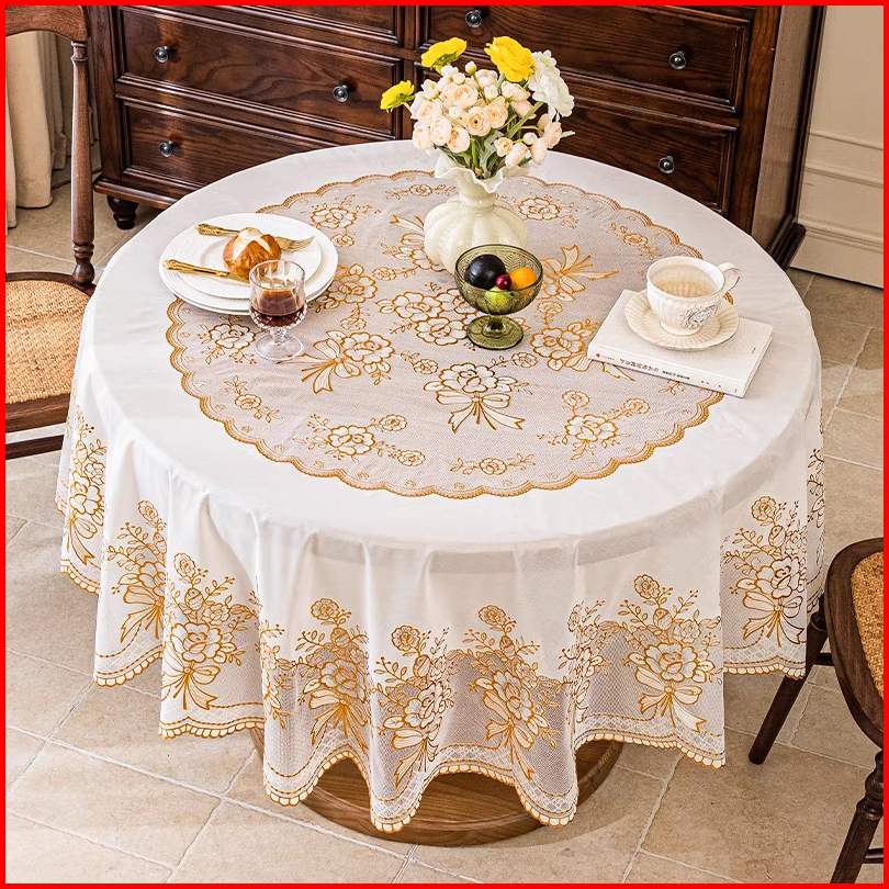 Taplak Meja Makan Motif Bunga Bundar Ukuran Diameter 120cm 150cm 180cm Persegi Panjang Bahan Pvc Tebal Premium Perlengka