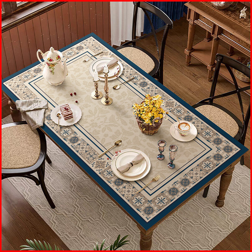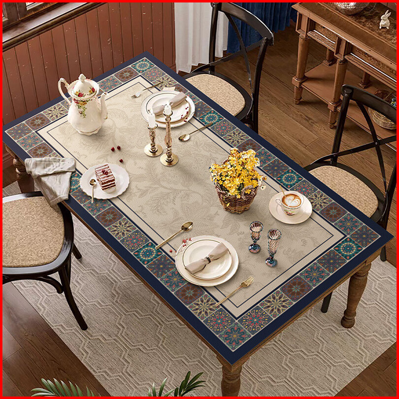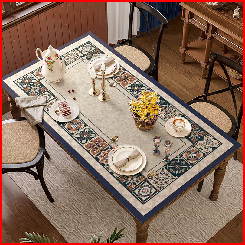 Alas Meja Makan Taplak Meja Ruang Tamu Bahan Kulit Pvc Kulit Jeruk Anti Slip Tahan Panas Waterproof