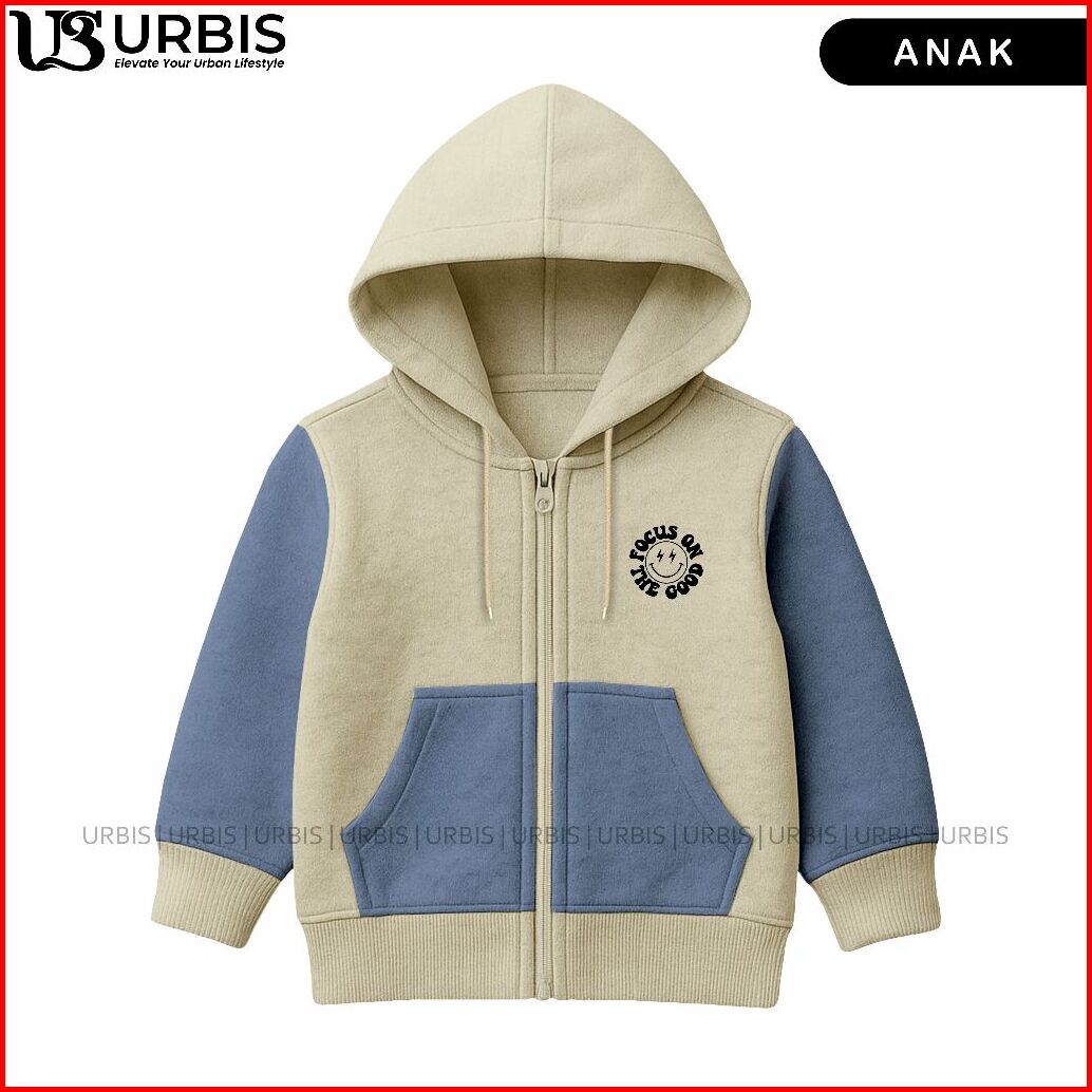 Urbis Jaket Zipper Anak Laki-laki Perempuan Kombinasi Usia 3-13 Tahun Focus On The Good Fleece Tebal