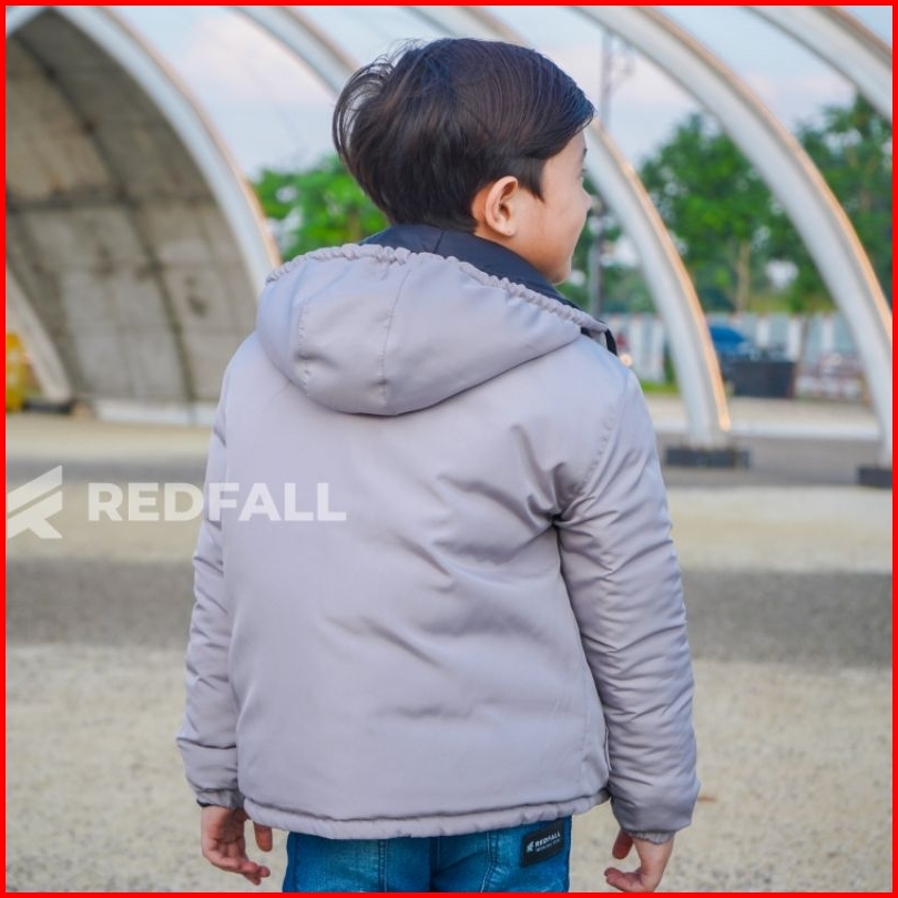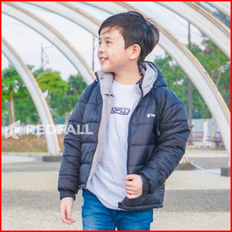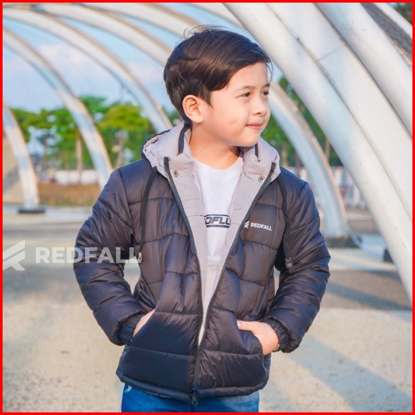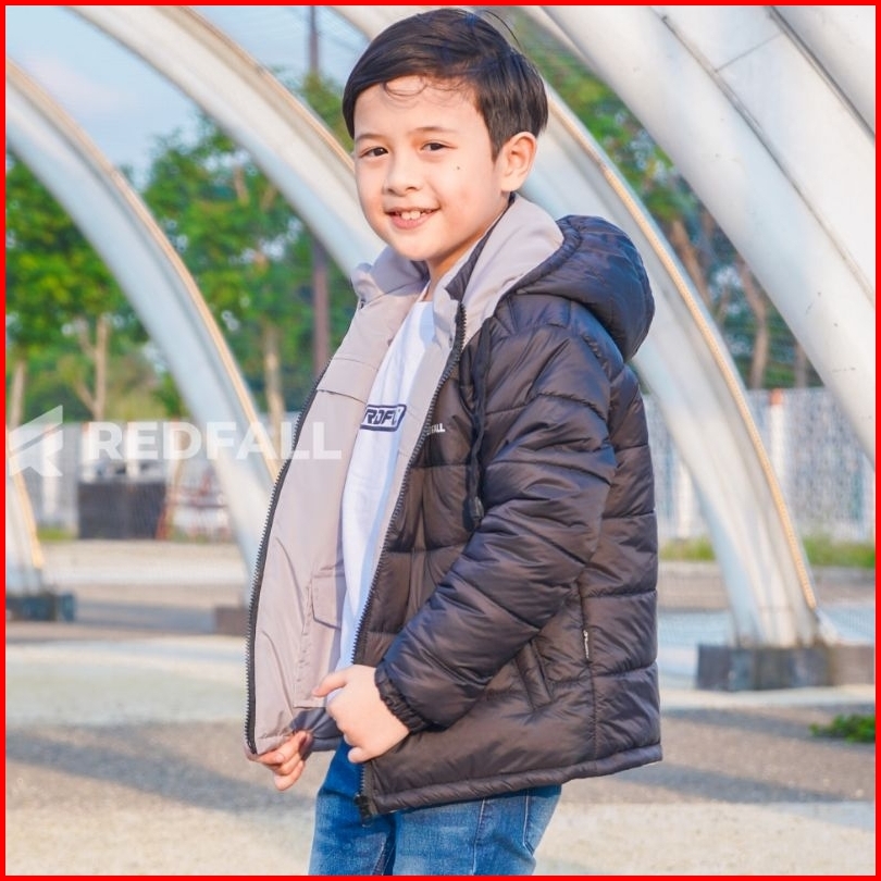Jaket Tebal Anak Puffer Premium Bolak Balik Usia 3-12 Tahun - Hitam X Silver