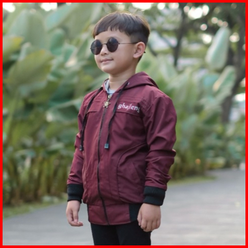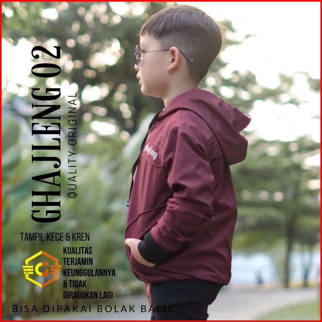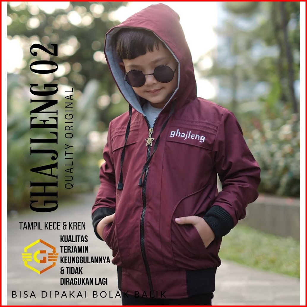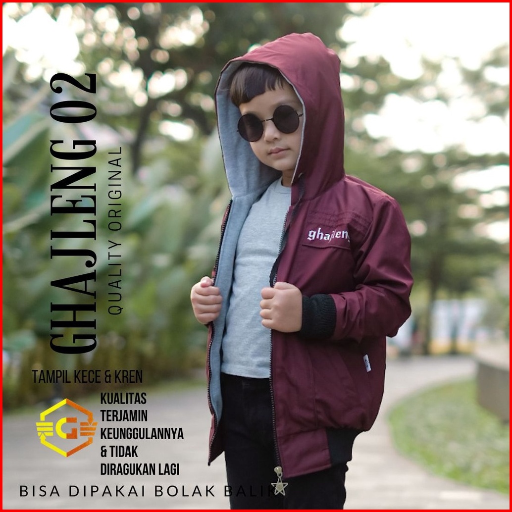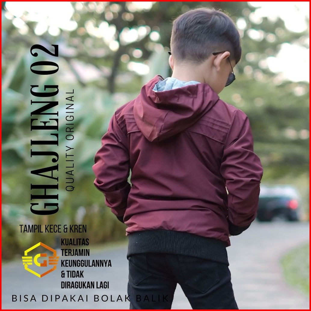 Ghajleng Jaket Anak Laki Laki Bolak Balik Racek Warna Maroon Usia 4-9thn