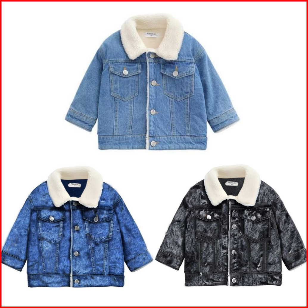 Jaket Jeans Anak Bulu 1-13 Tahun Model Trucker Sherpa Unisex