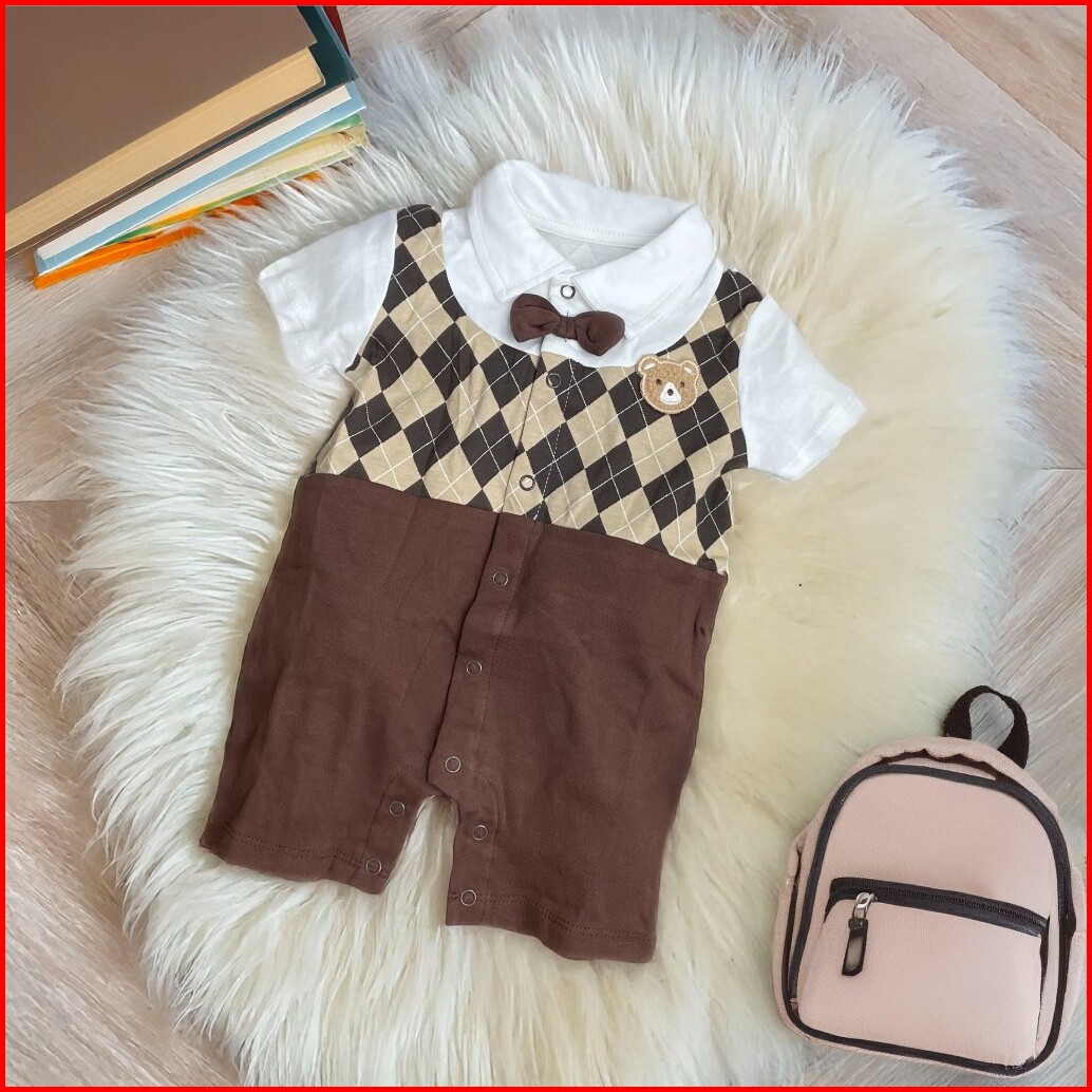 Jumper Bayi Laki Laki Model Baju School Kotak Bear Brown Premium 0-18 Bulan Baju Anak Keren