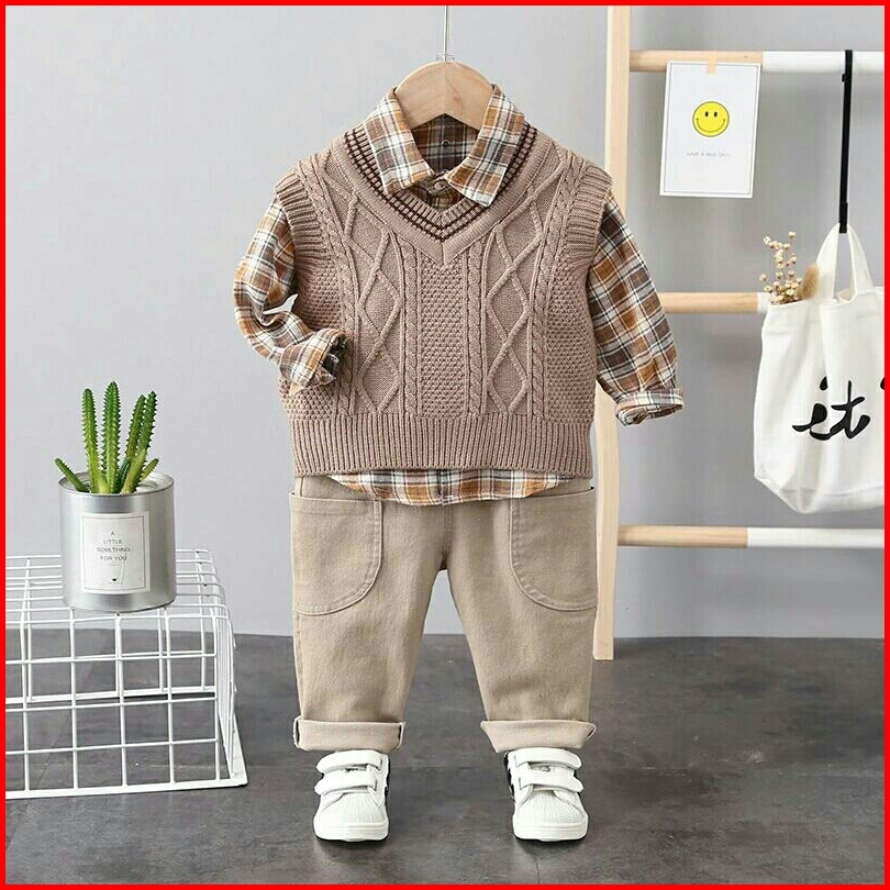 Setelan Bayi Laki-laki Setelan Anak Set 3pcs Vest Kemeja Celana Set Boy Baju Bayi Laki Baju Set Baju Setelan Anak Laki U