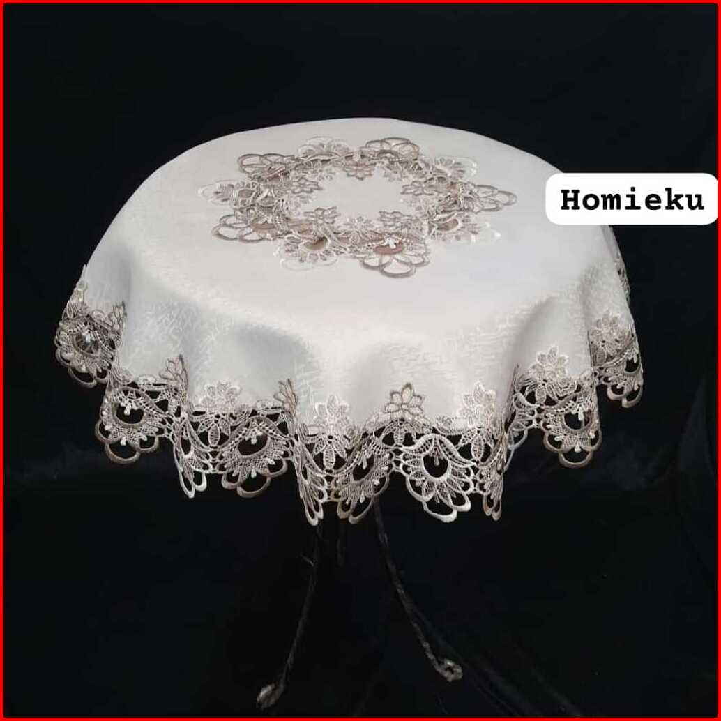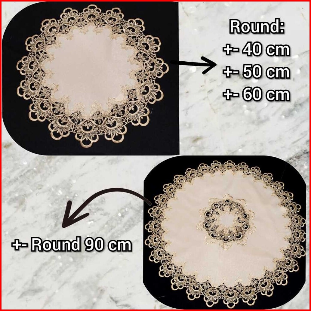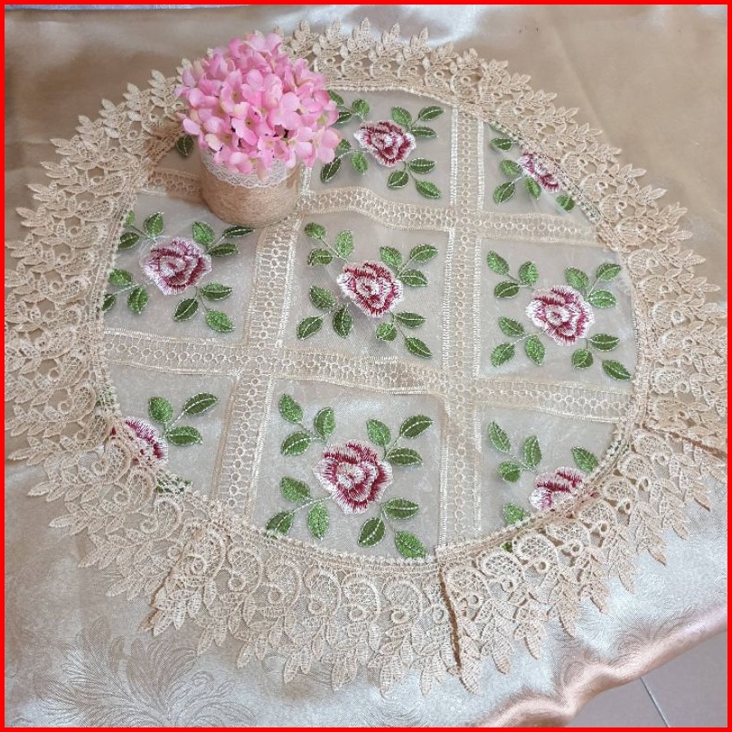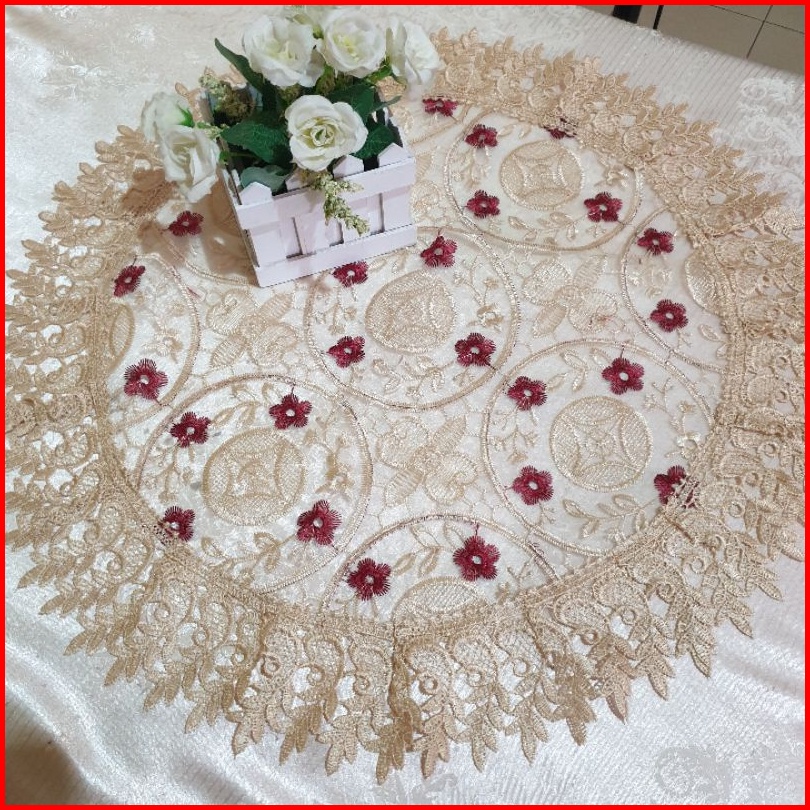Taplak Meja Vas Bulat Kecil Bordir Mewah 60 Cm