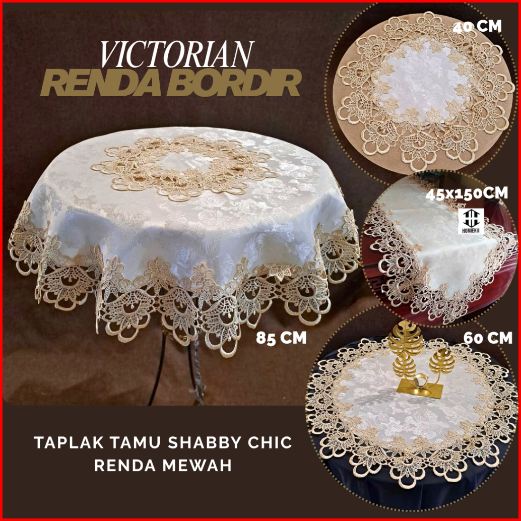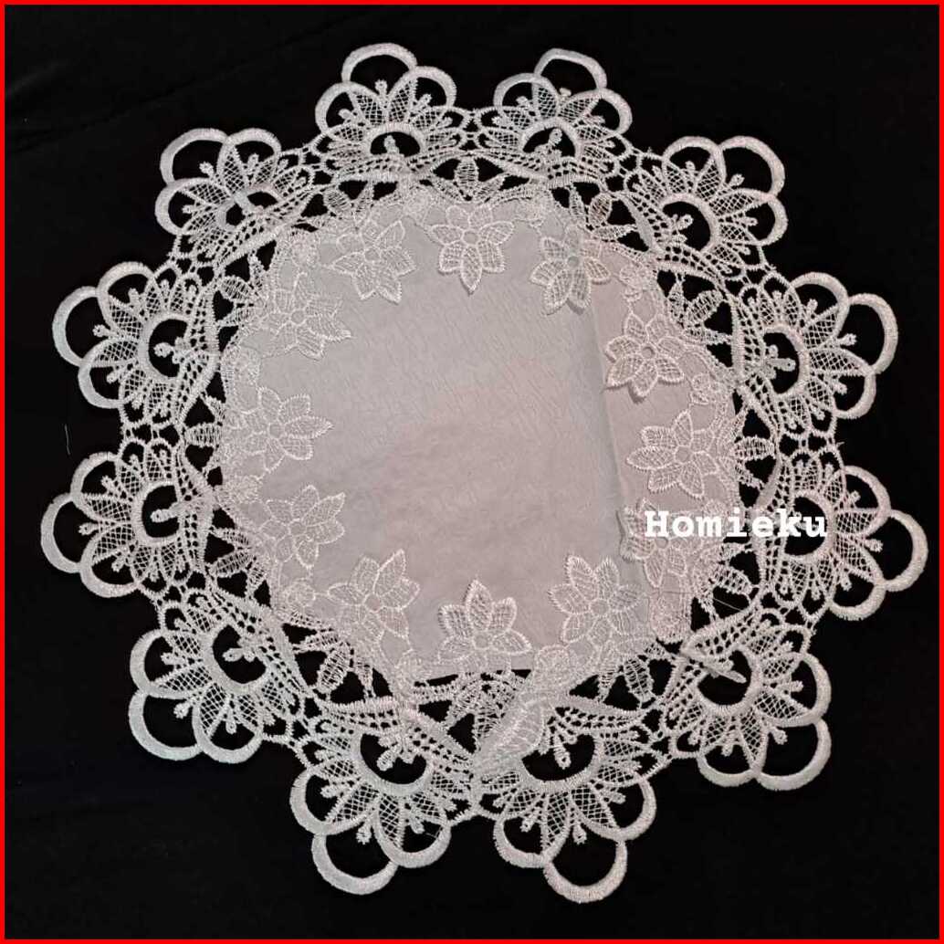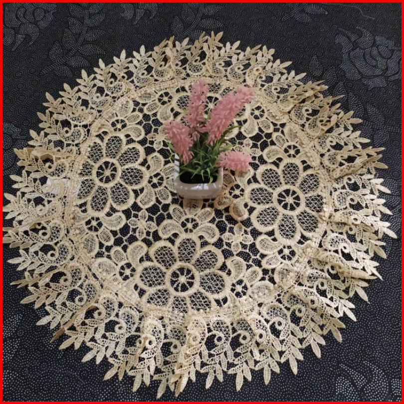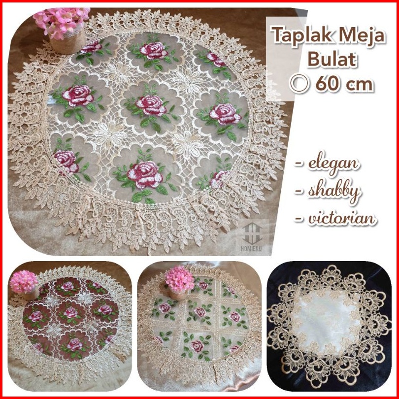Taplak Meja Vas Bulat Kecil Bordir Mewah 60 Cm