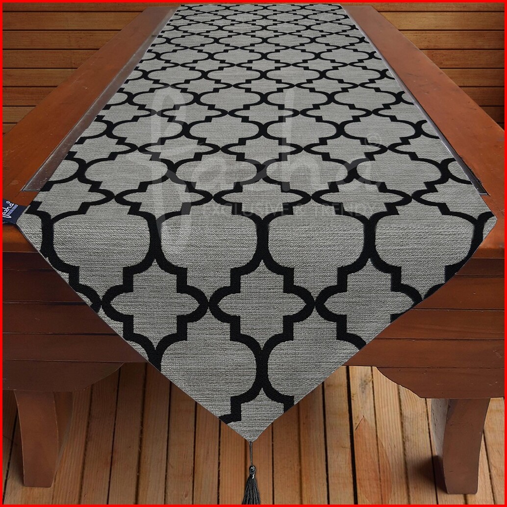 Taplak Meja Tamu Makan Modern Minimalis Fazha Mewah Cantik Elegant Motif Geomertis Warna Hitam Cream Abu Tua 30x120 30x1