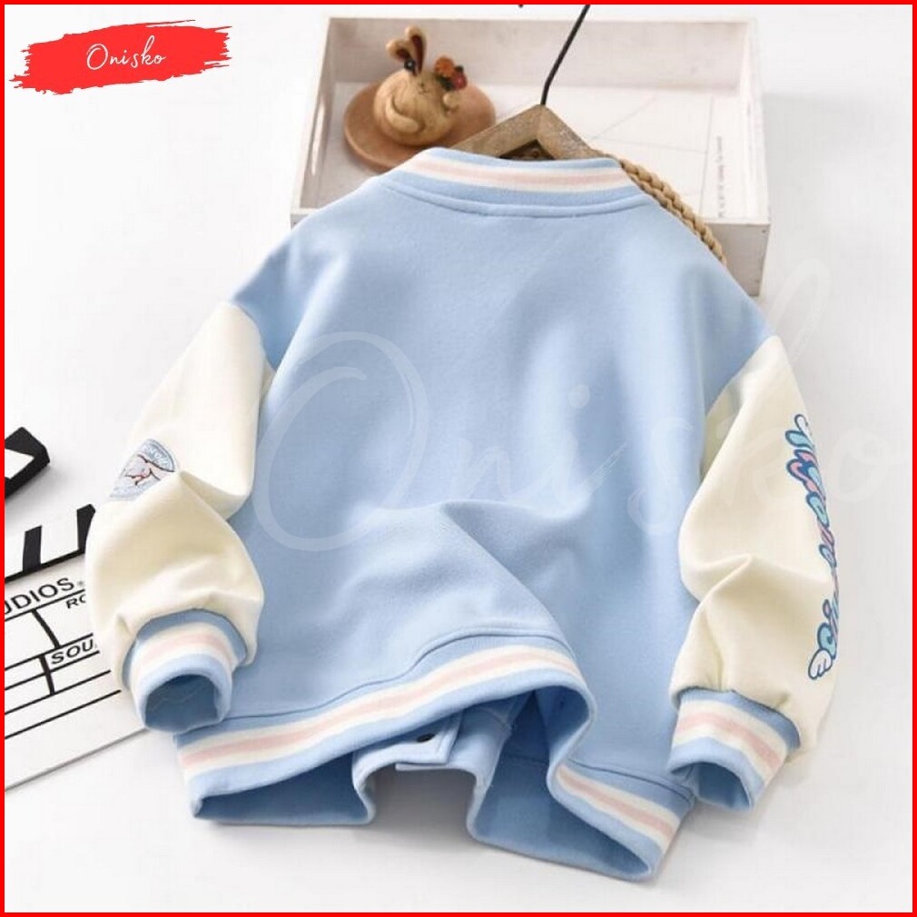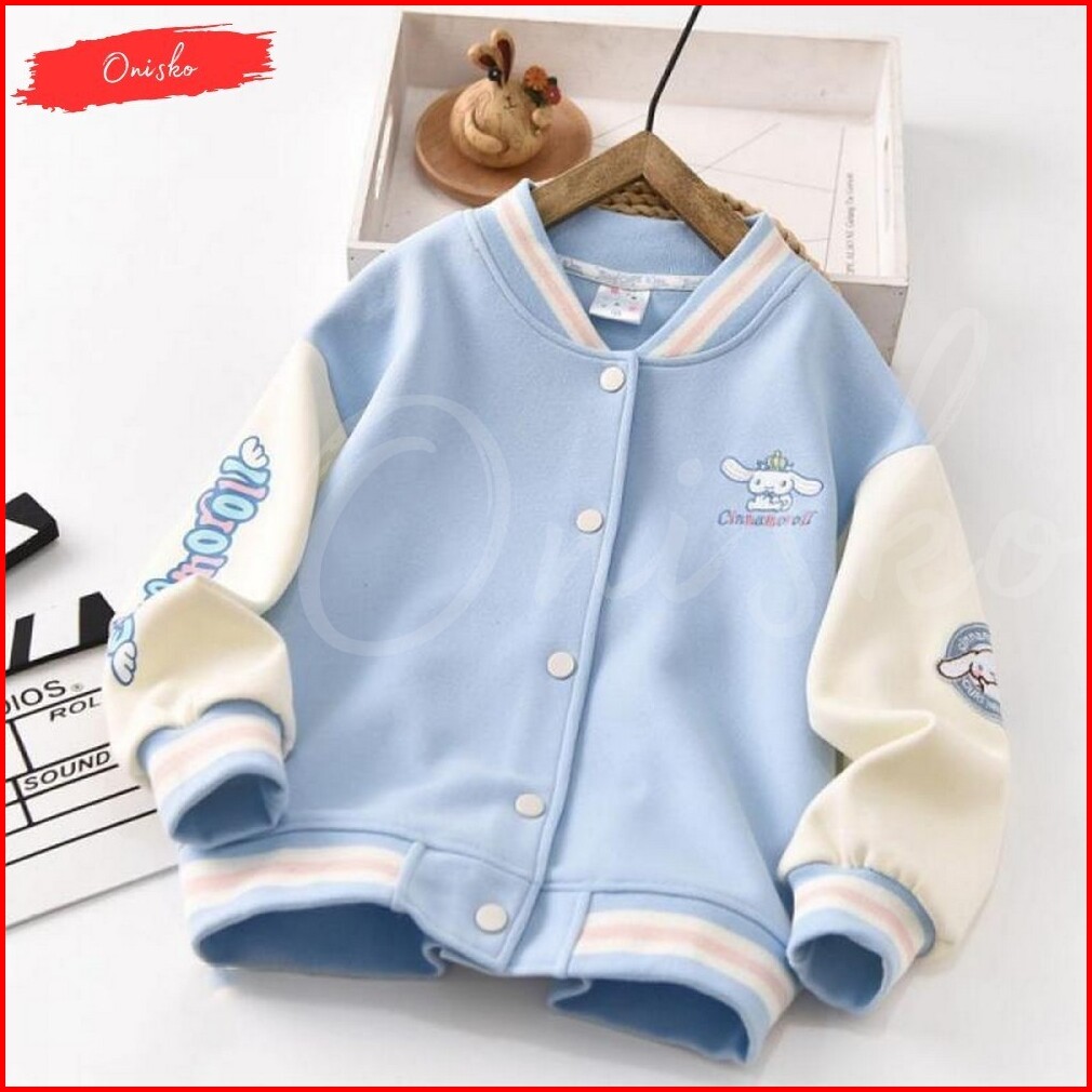 Jaket Varsity Jacket Bomber Anak Perempuan Cewek Laki Laki Cowok Unisex Model Gambar Kartun Sanrio Lucu Cinnamoroll Usia