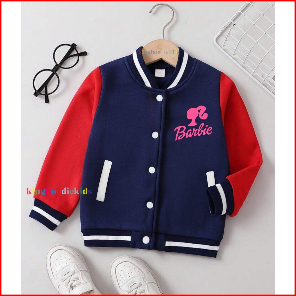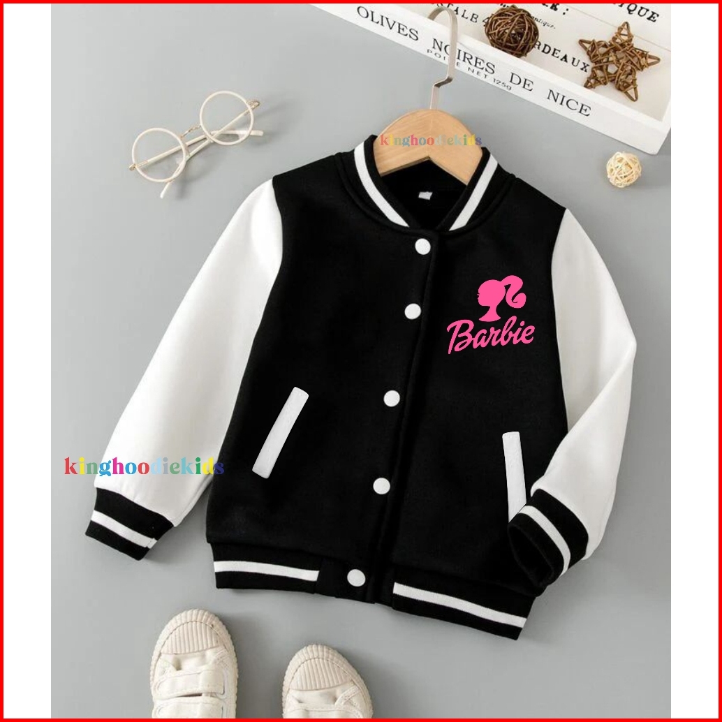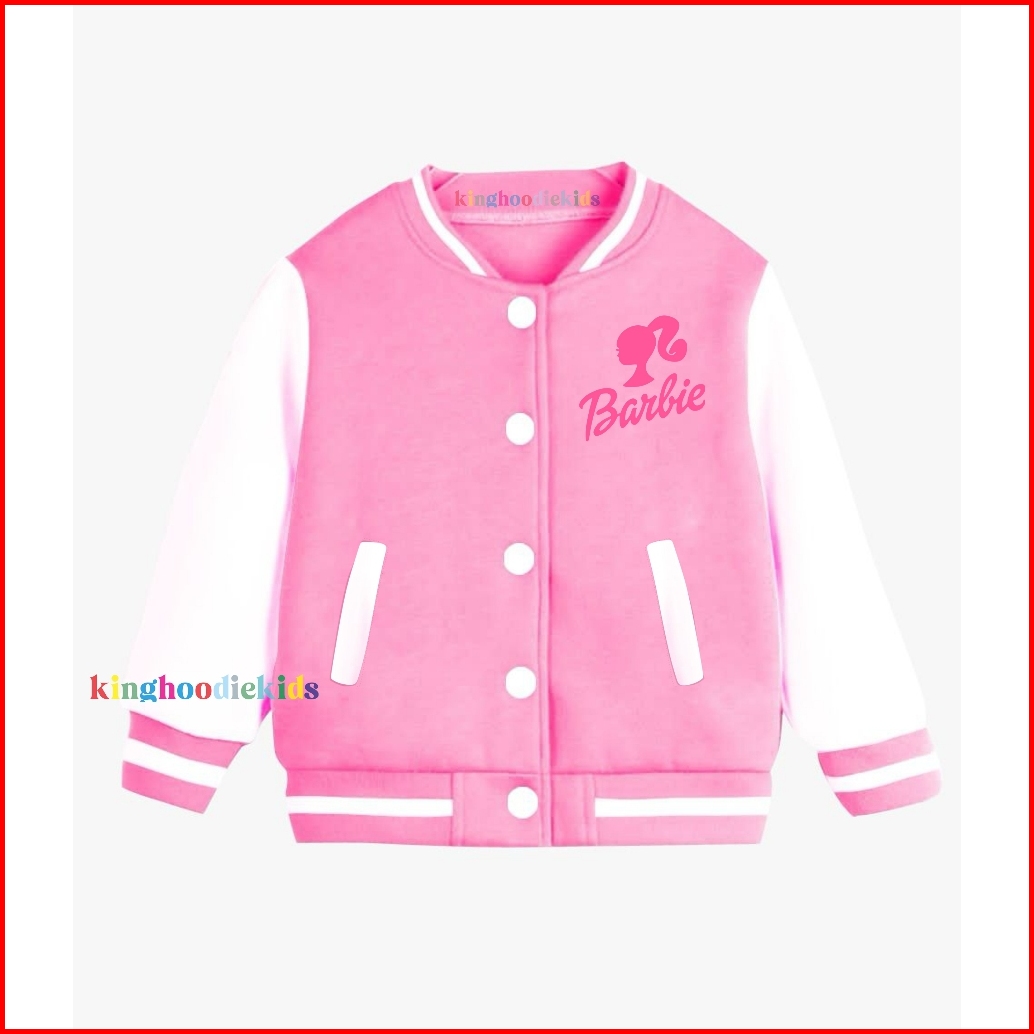 Jaket Varsity Anak Perempuan Barbie Umur 2 3 4 5 6 7 8 9 10 11 12 Tahun Jaket Baseball Anak Cewe Unisex Hoodie Swaeter B