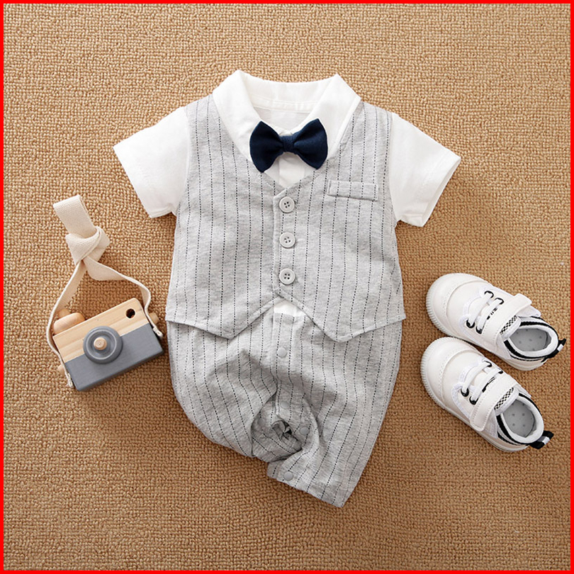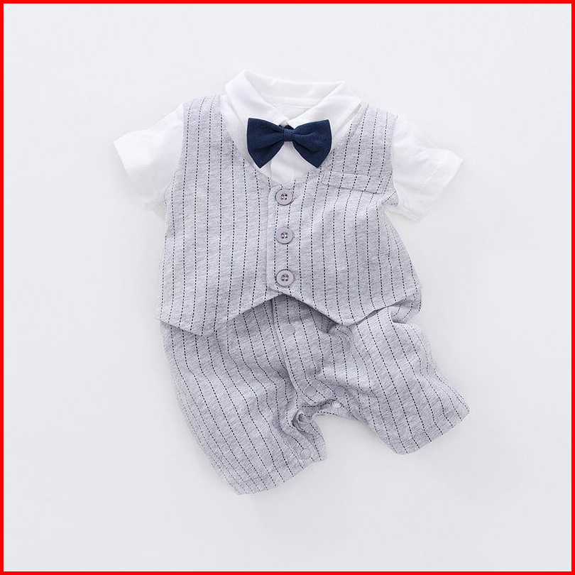 Babylovanta Jumper Bayi Tuxedo Abu Premium Usia 0-18 Bulan Ala Korea Lengan Pendek Pakaian Bayi Lucu