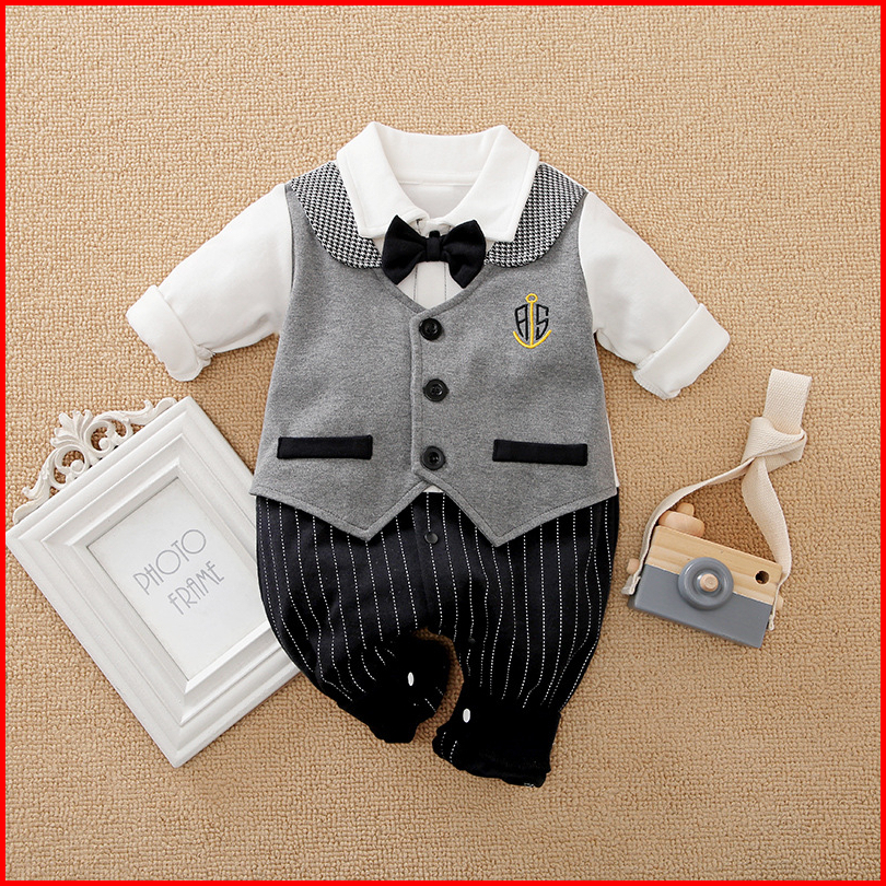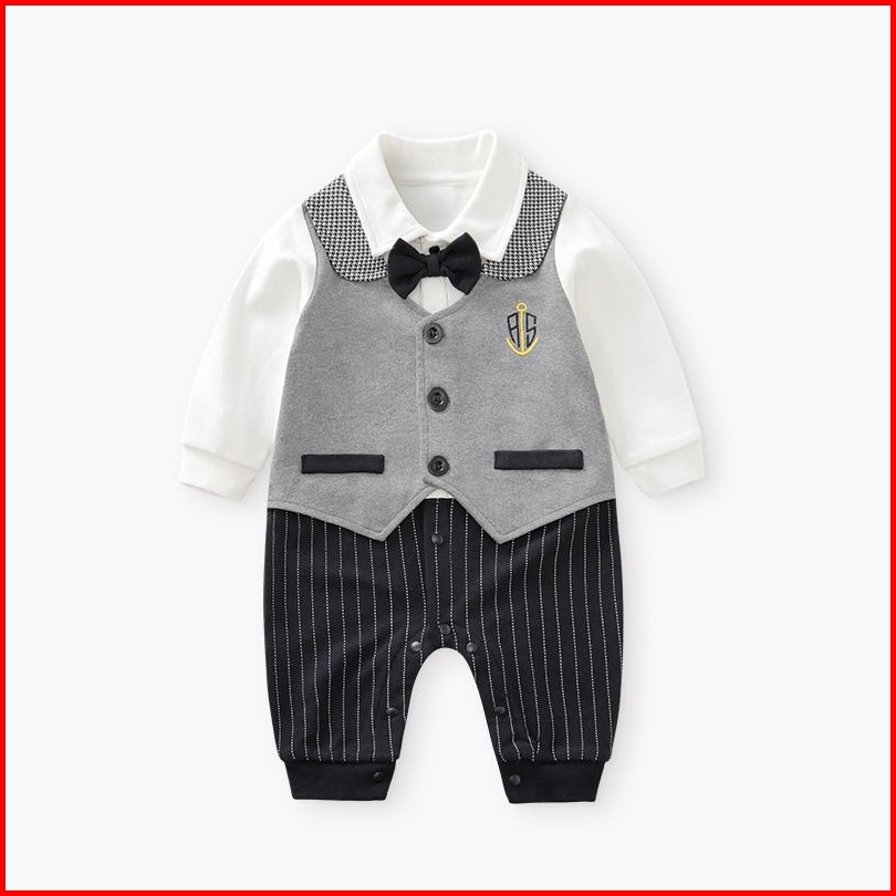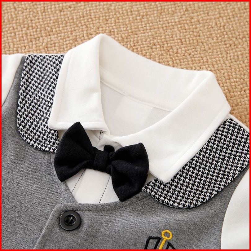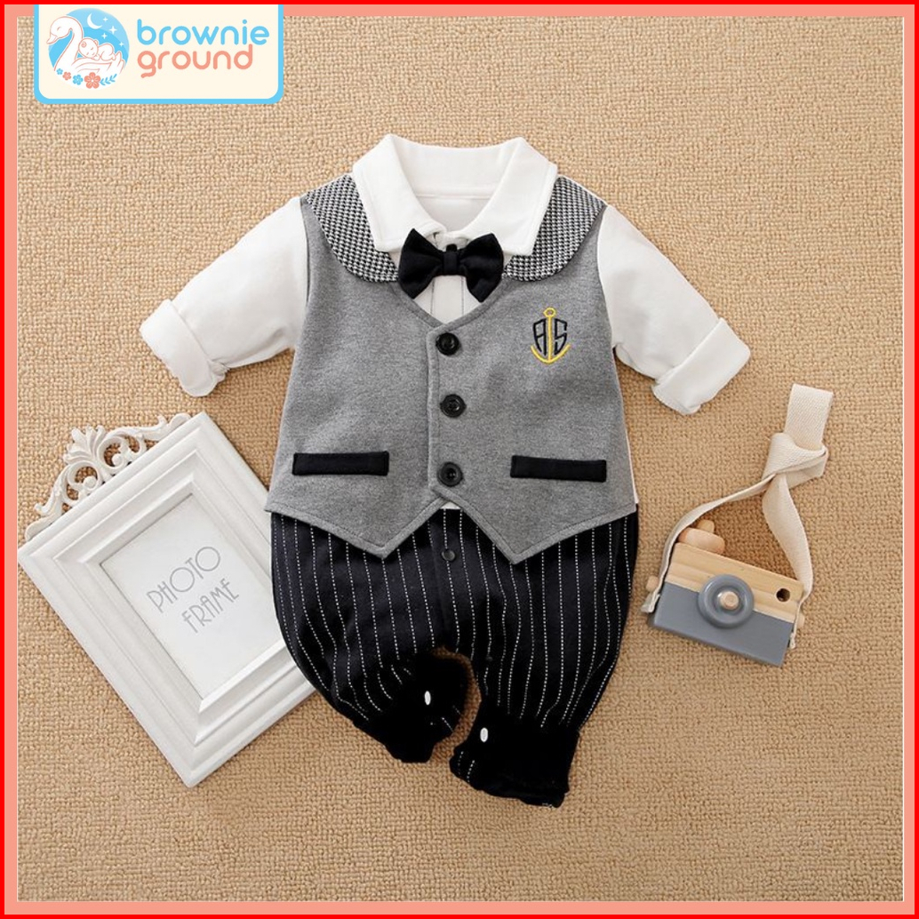 Brownieground Jumper Bayi 0-18 Bulan Tuxedo Abu Jumper Bayi Lengan Panjang 100 Katun Baju Bayi Laki Laki Jumper Baby