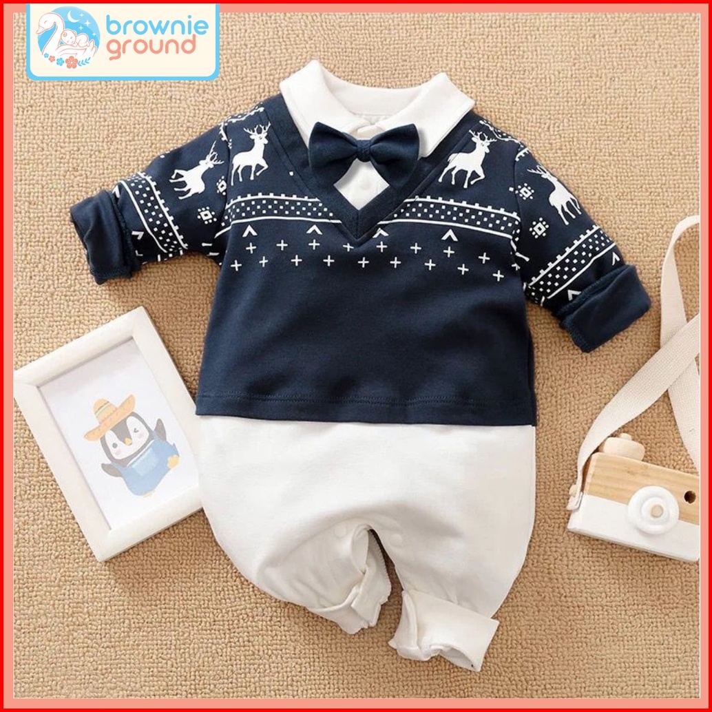 Brownieground Jumper Bayi Natal 0-18 Bulan Baby Christmas Jumpsuit Baju Bayi Lengan Panjang Natal Lucu