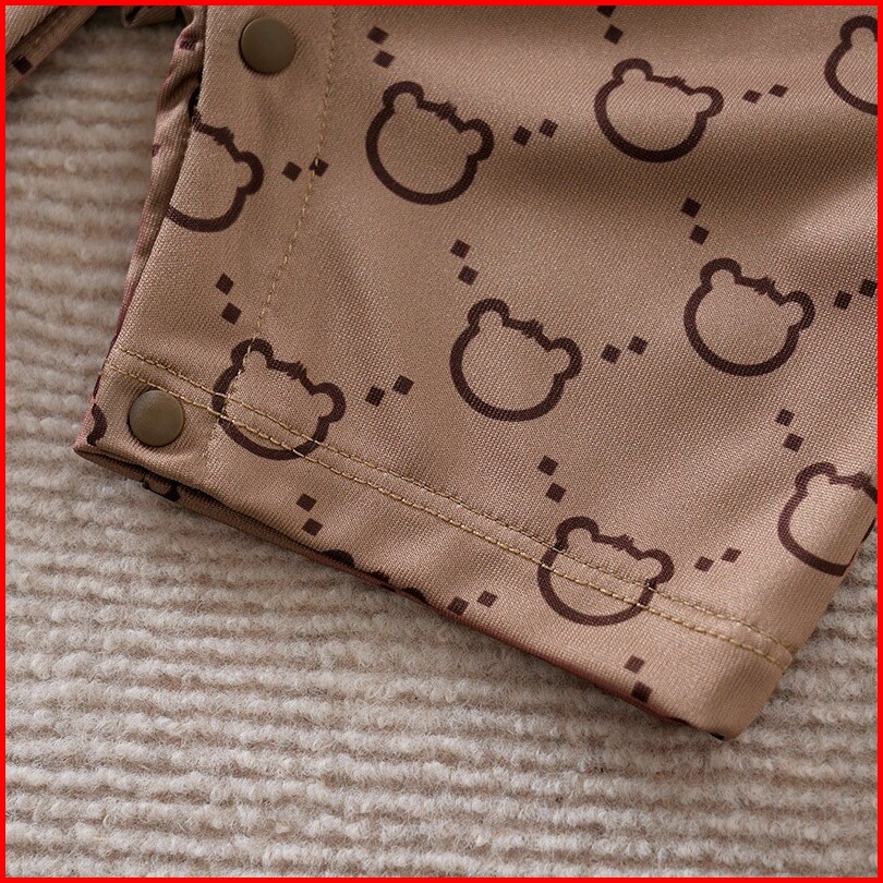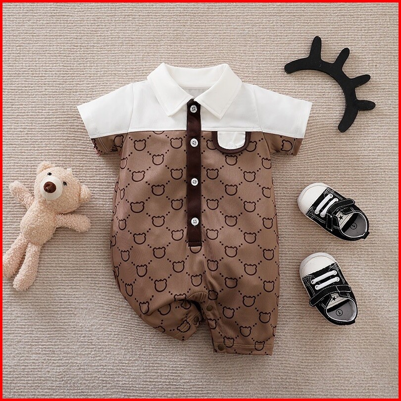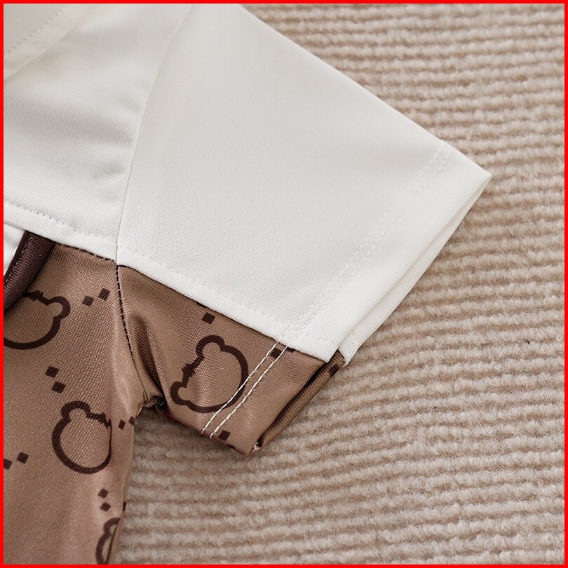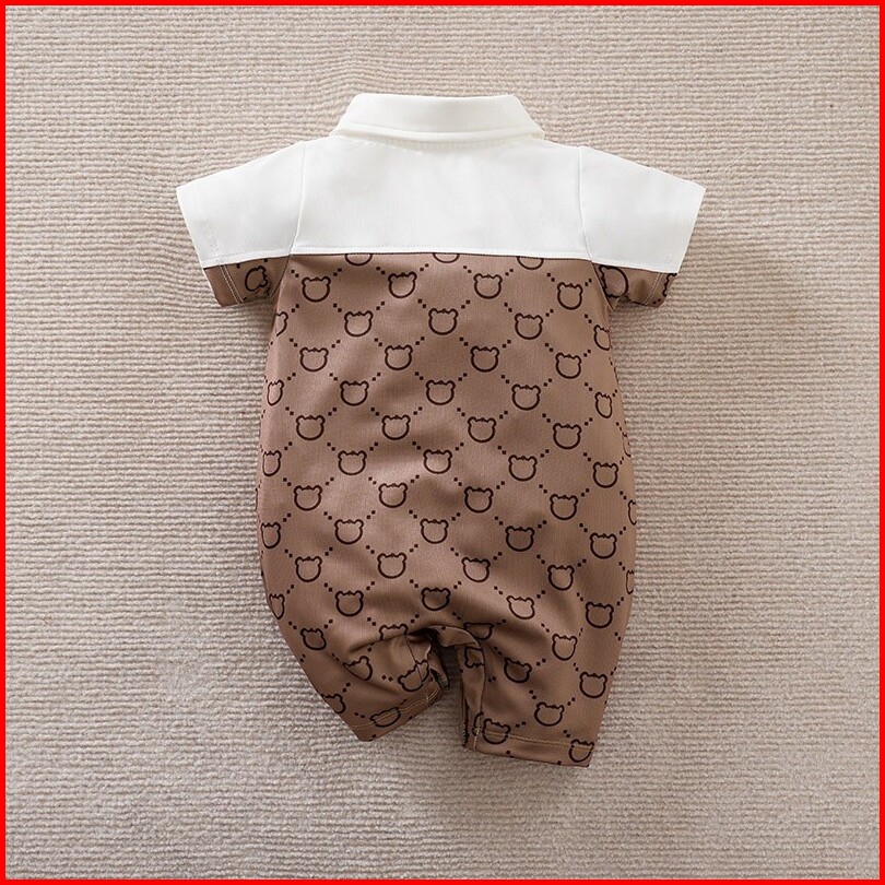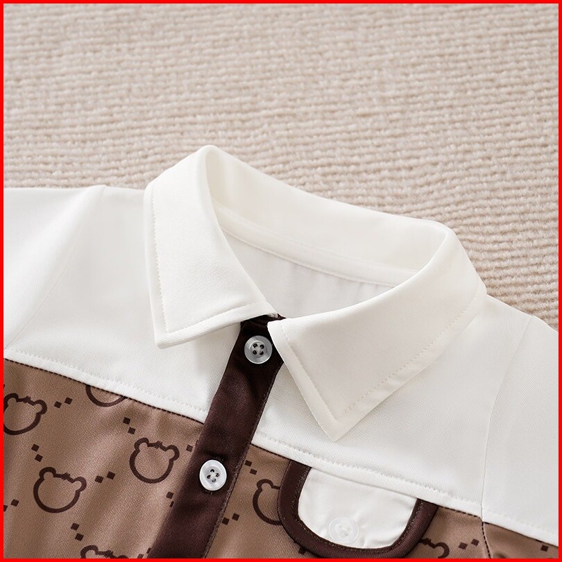 Baju Anak Bayi Laki Laki Perempuan Import Baju Bayi Lengan Pendek Impor Jumper Newborn Cokelat Motif Kepala Bear Dengan