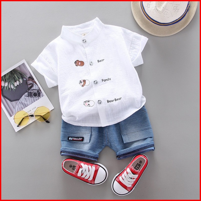 Promo 10.10 Happyoliver Set Kemeja Alfon Bear 212 Ebv Setelan Kemeja Bayi Laki-laki Lengan Pendek Celana Softdenimport M