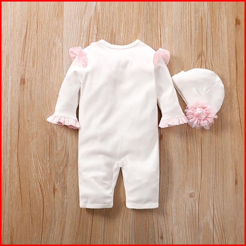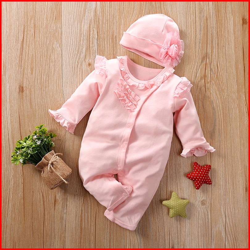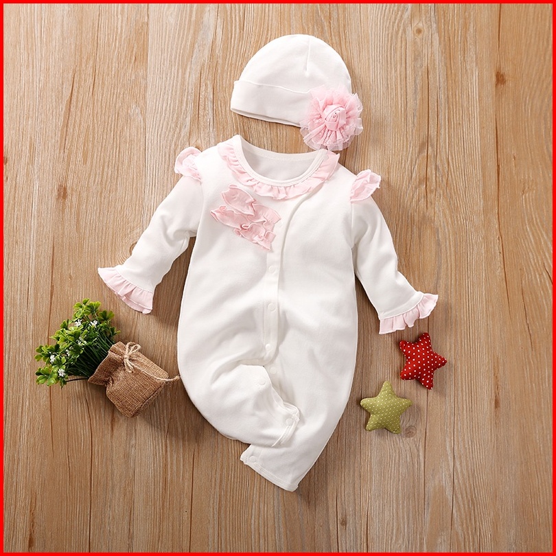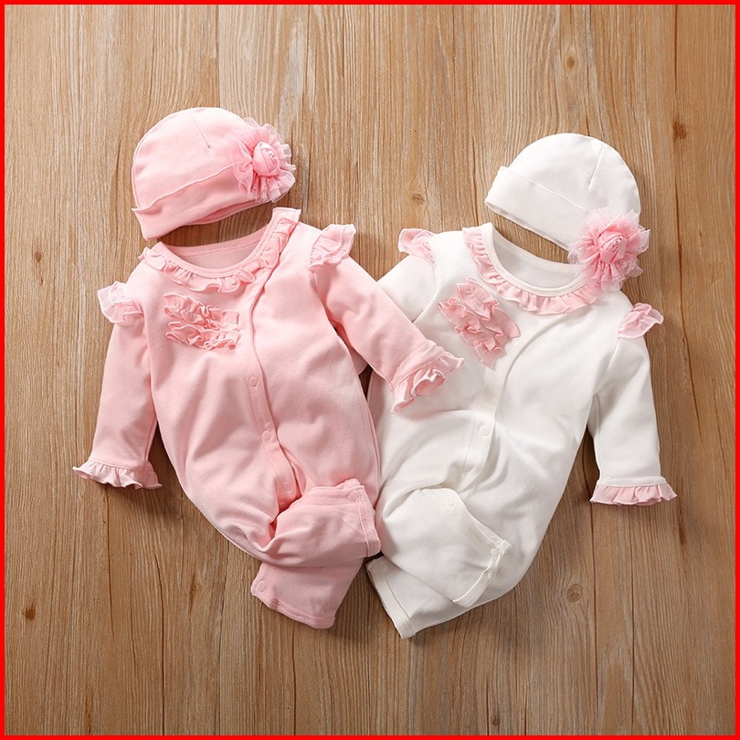 Babywill.id Baju Bayi Perempuan Gratis Topi Bunga Bunga Pink Dan Putih Jumper Bayi Perempuan Bahan Katun Tebal
