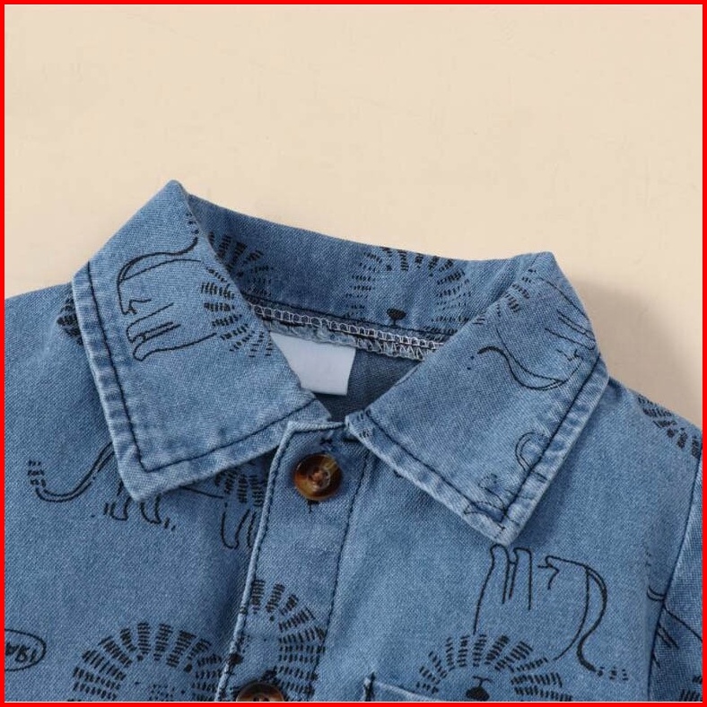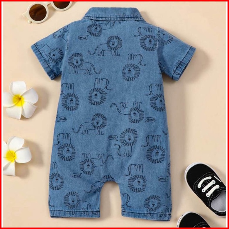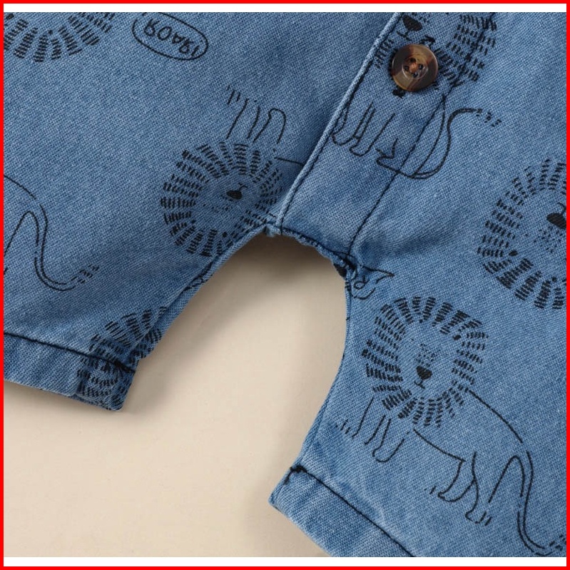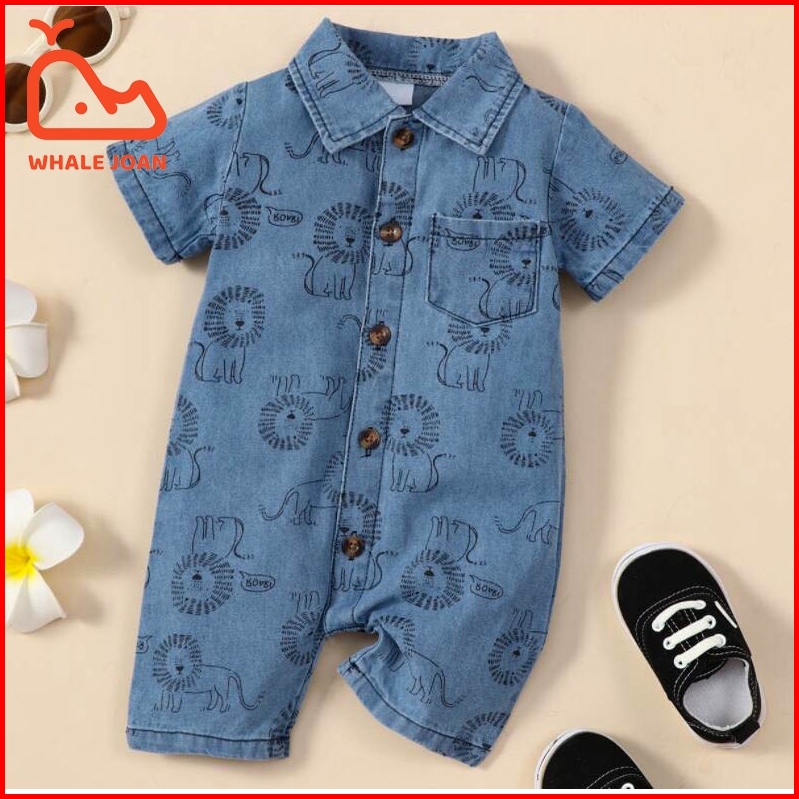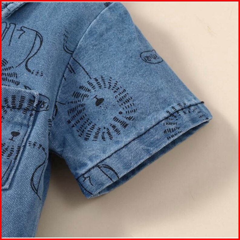 Jumper Baju Bayi Laki Laki Denim Lengan Pendek 0 6 12 18 Bulan Hewan Motif