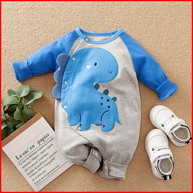 Babylovanta Jumper Bayi Laki Laki Usia 0-18 Bulan Baju Baby Motif Dino Biru Lucu