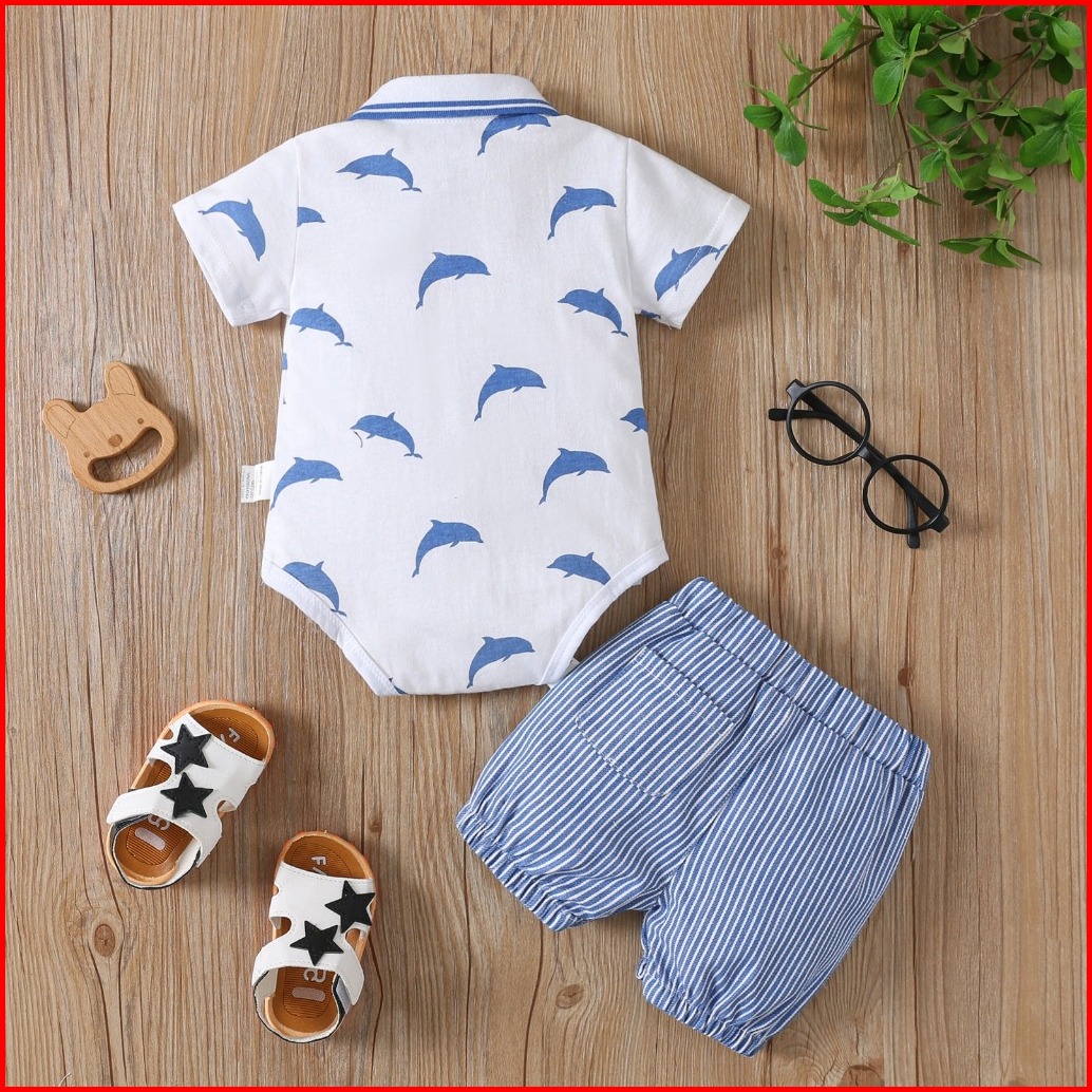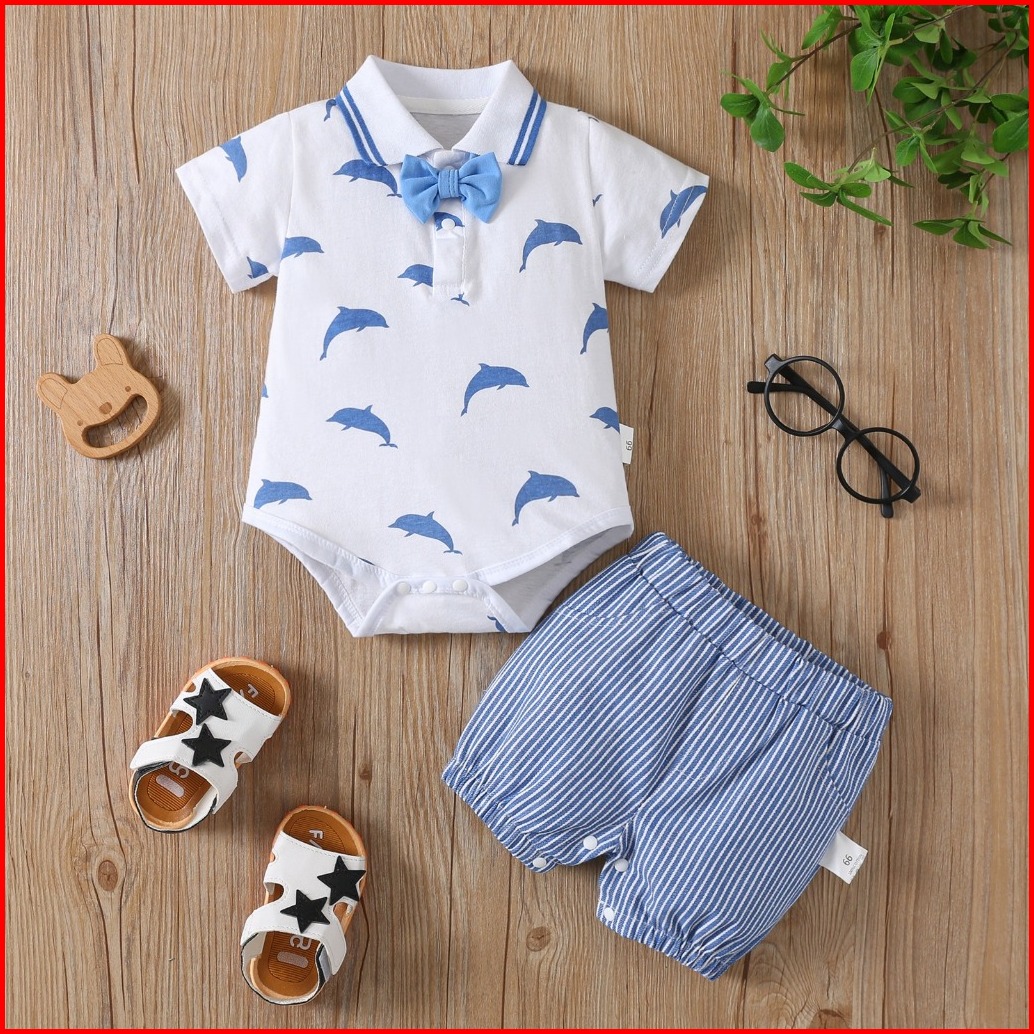 Setelan Bayi Laki Laki 318 Bulan Lucu Bodysuit Celana Lumba Motif Gemes Bahan Adem