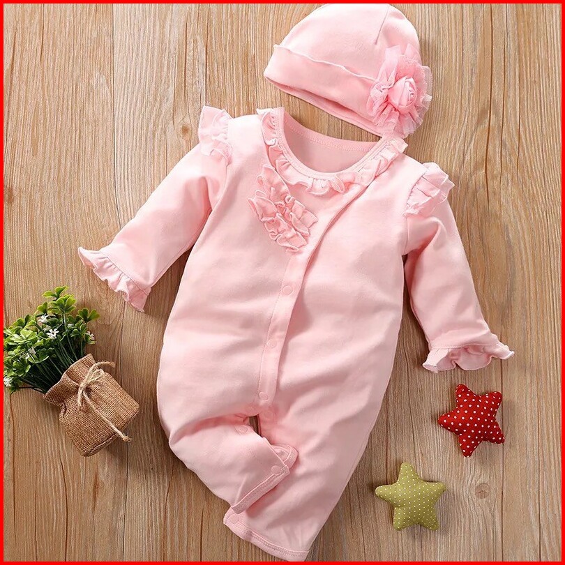 Brownieground Baju Bayi Perempuan 0-12 Bulan Pink Putih Renda Jumper Bayi Perempuan Baju Baby