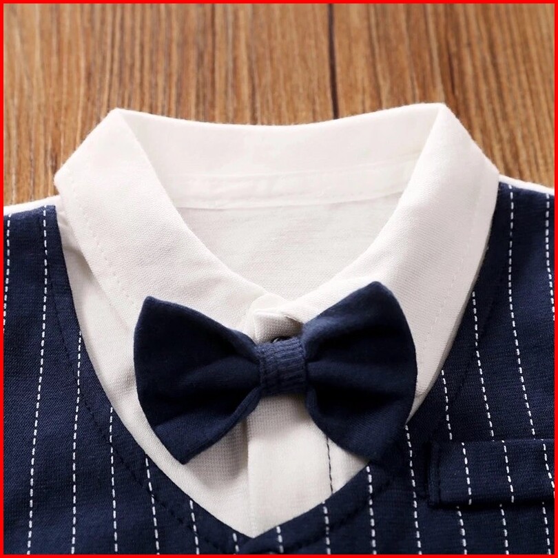 Jumper Bayi Tuxedo Navy Cotton Baju Kodok Lengan Pendek Premium 024 Bulan