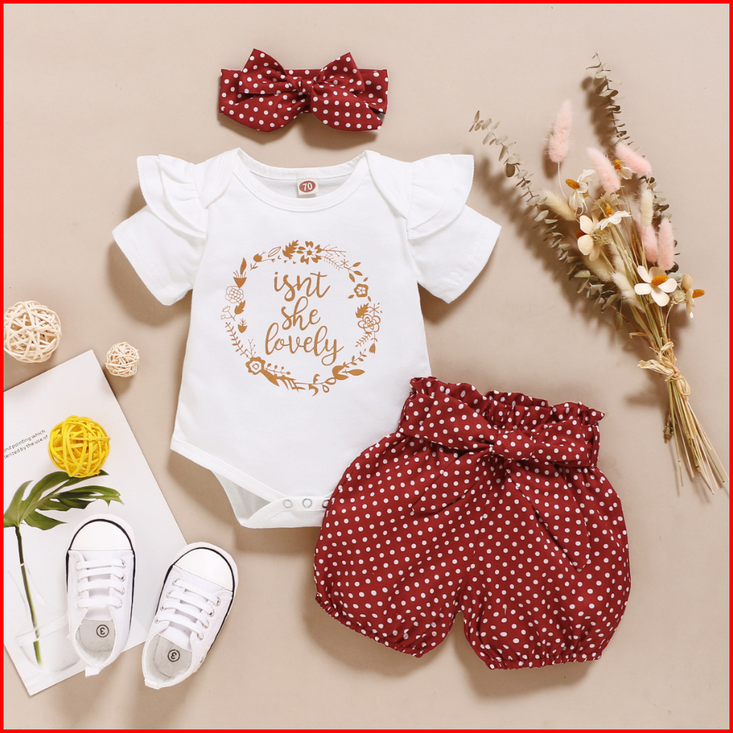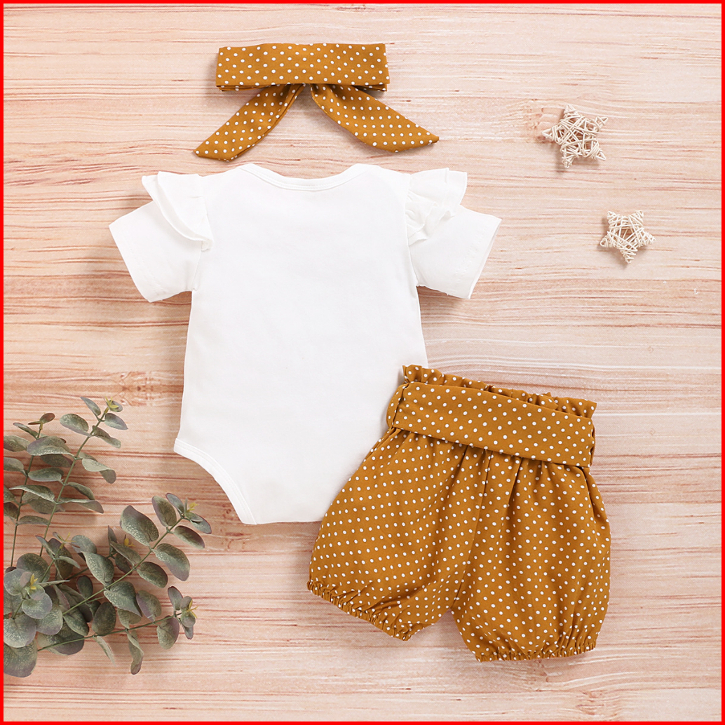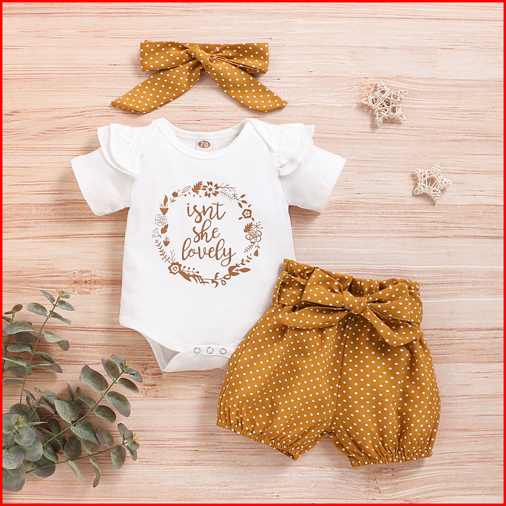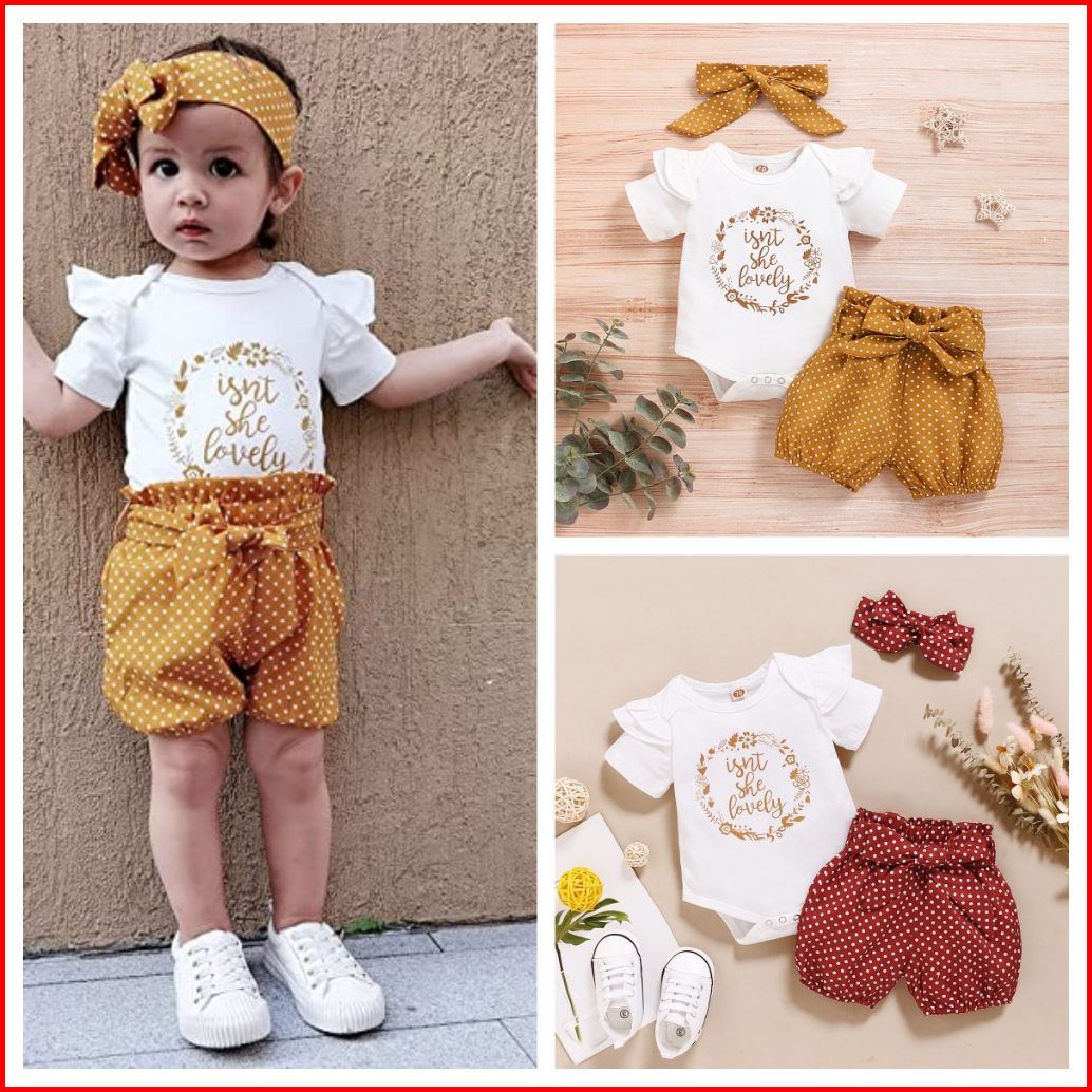 Tempat Stelan Bayi Motif Bunga Pakaian Bayi Perempuan Mengatur Pola Ikat Kepala Bunga Kemeja Warna Solid Celana Pendek B