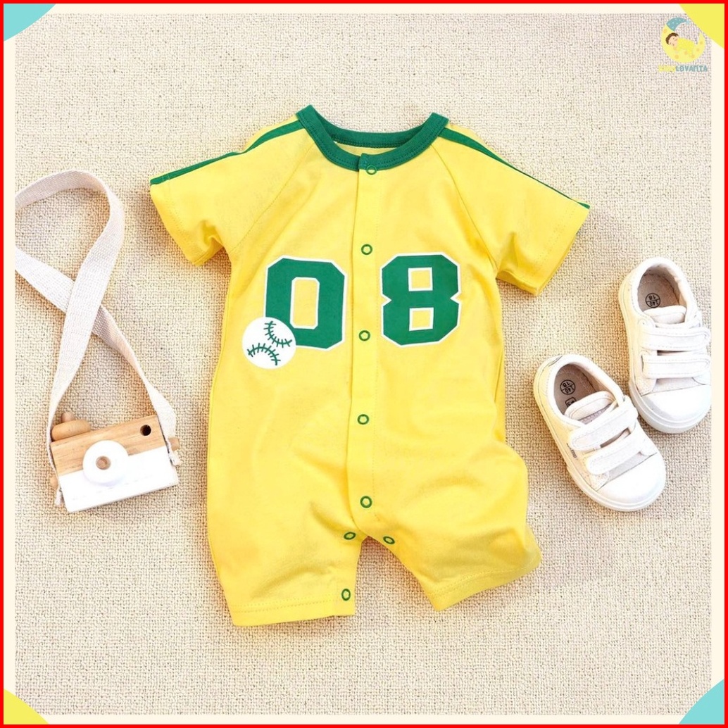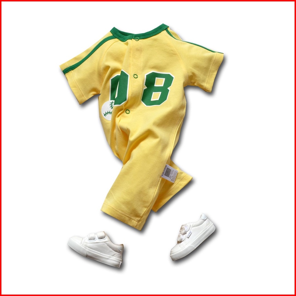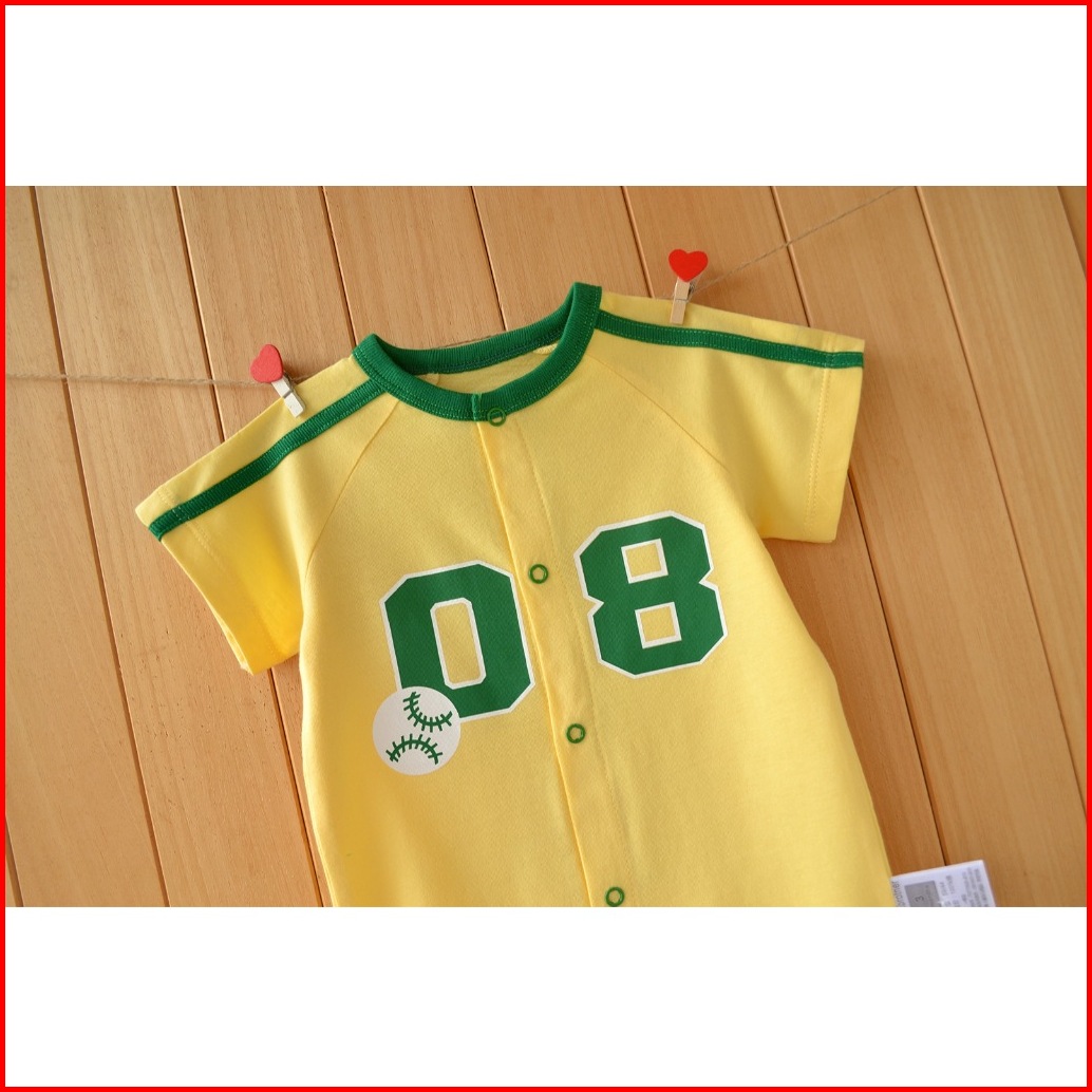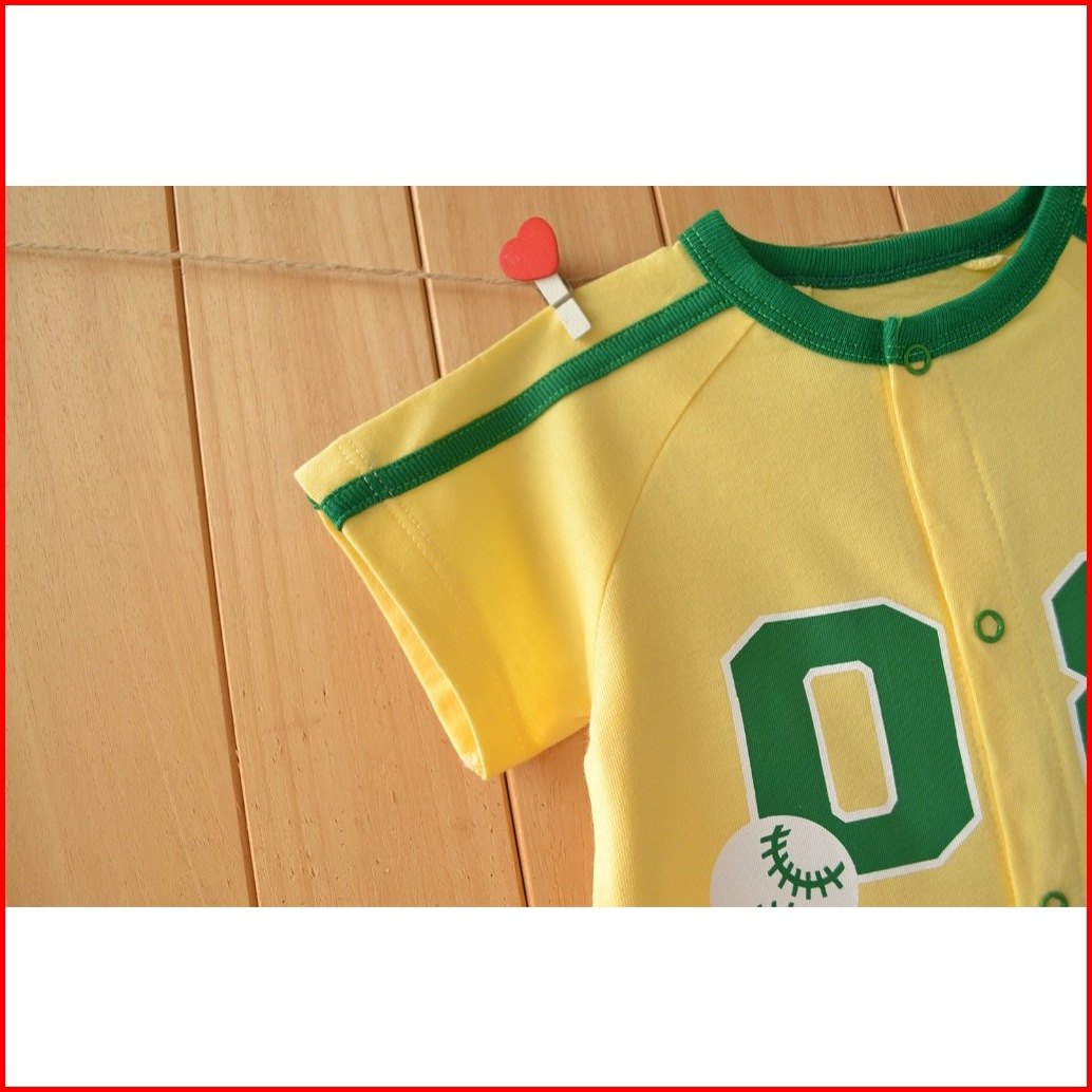 Baju Bayi Cowok Motif 08 Baseball Jumper Kuning Lucu Lengan Pendek Katun Adem 018 Bulan