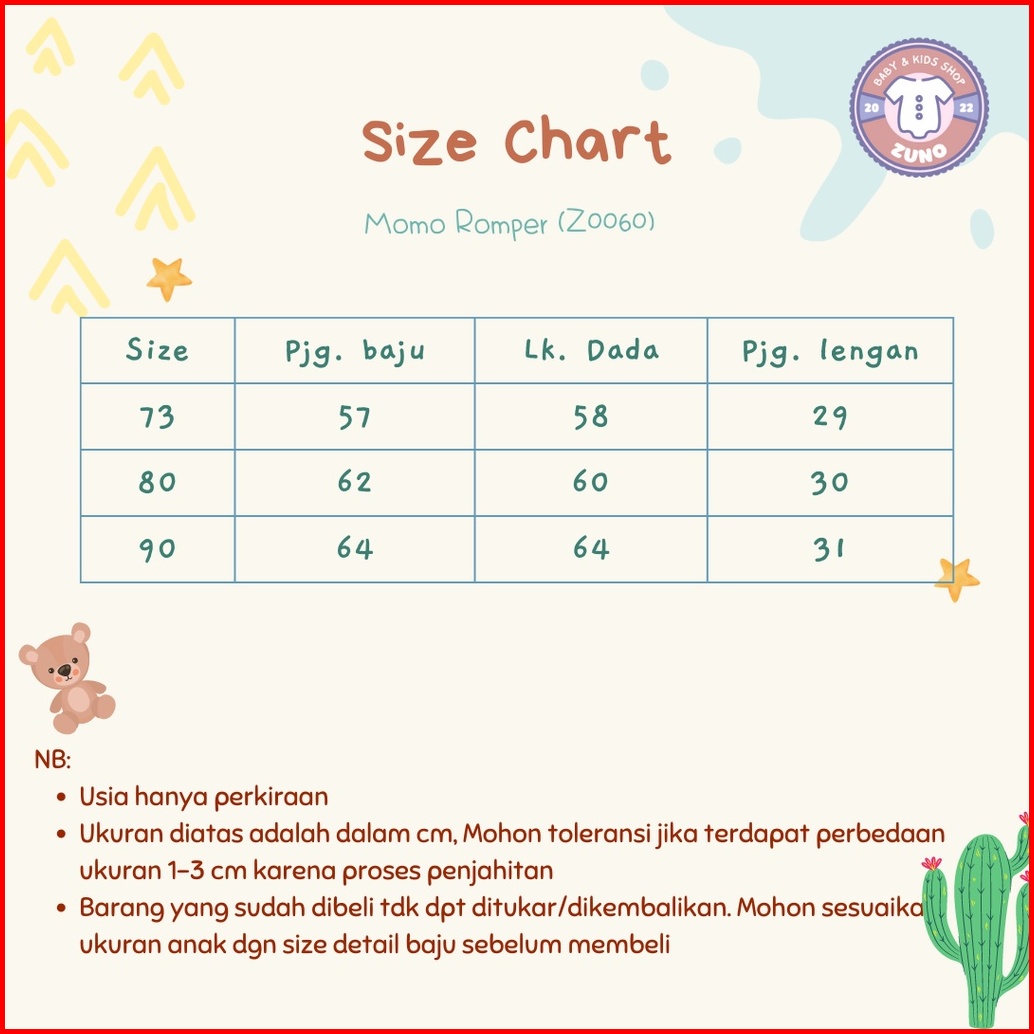 Z0060 0-2thn Zuno Kids Momo Romper Baju Bayi Anak Toddler Romper Set Pakaian Cowok Premium Impor Korean Lucu