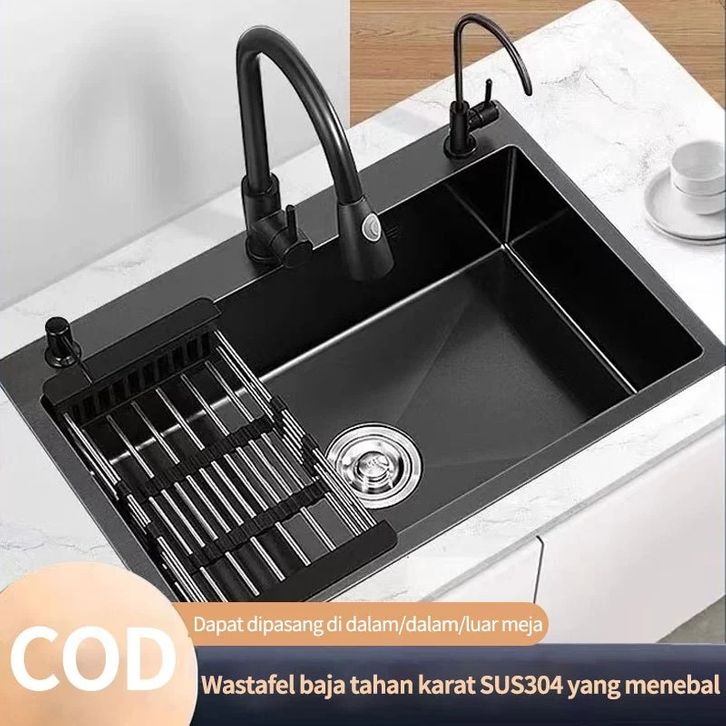 Paket Komplit Kitchen Sink 6045/8245 Wastafel Dapur Kitchen Sink Black Wastafel Stainless Steel Set