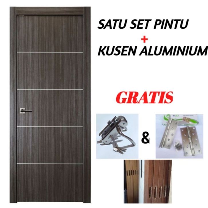 PINTU KAMAR TIDUR PINTU RUMAH PINTU MINIMALIS HMR SERIS 1 SET PINTU + KUSEN ALUMINIUM HANDLE KUNCI ENGSEL PINTU KAMAR