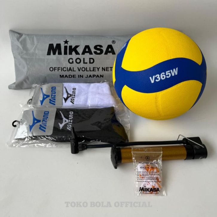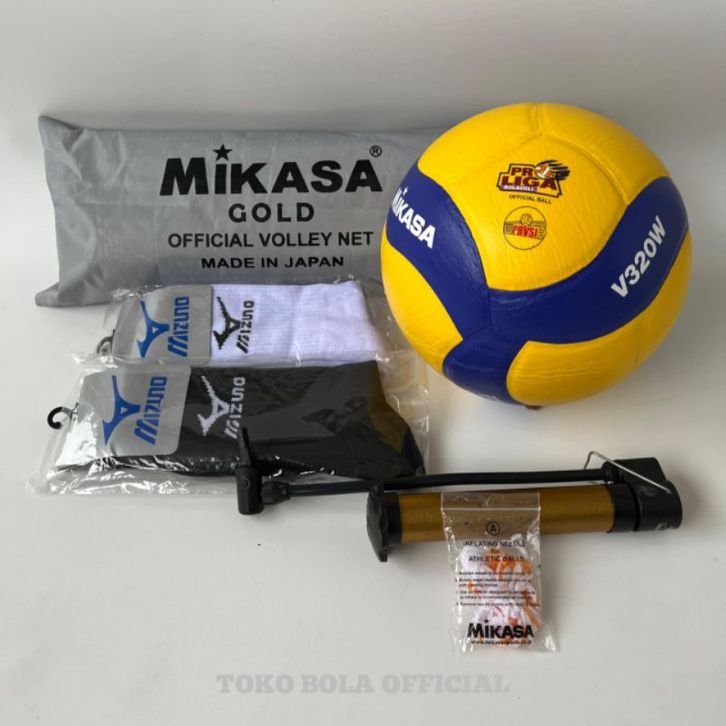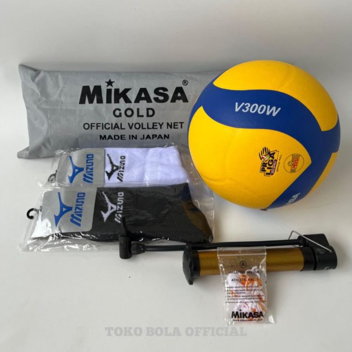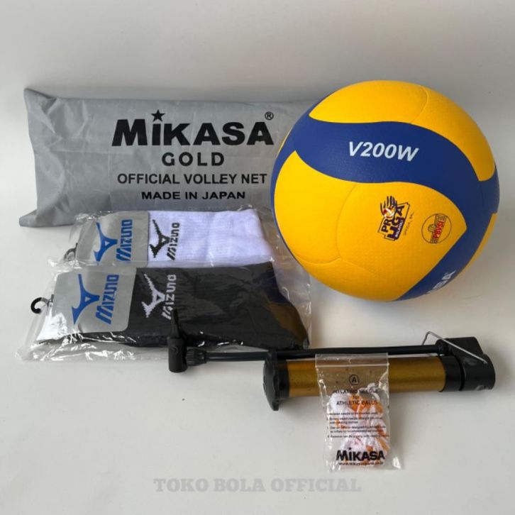 PAKET BUNDLING 1 SET BOLA VOLLY+NET+KAOS KAKI MIKASA V200W-V300W-V320W-V330W-V365W PRESS GRADE ORIGINAL/GRATIS