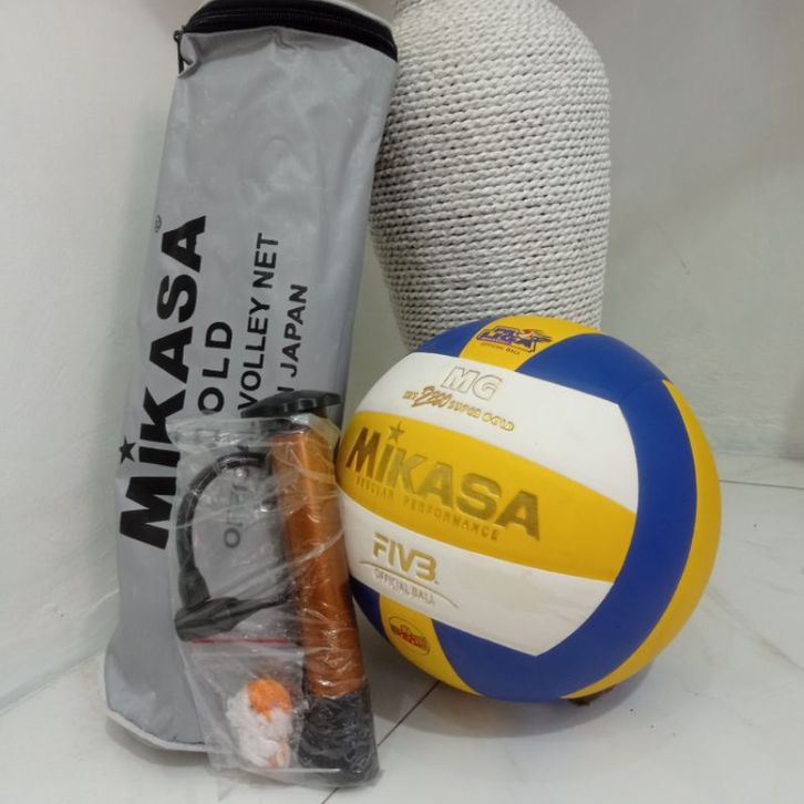 Bola volly 1 paket dengan net voli + pompa mini PROMO TERMURAH