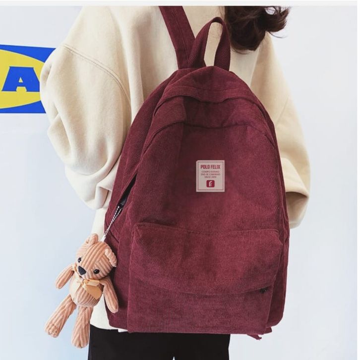 Tas Ransel Sekolah Kuliah Kerja Corduroy Backpack Pria Casual Tas Laptop up to 16 Inch SH-BAG
