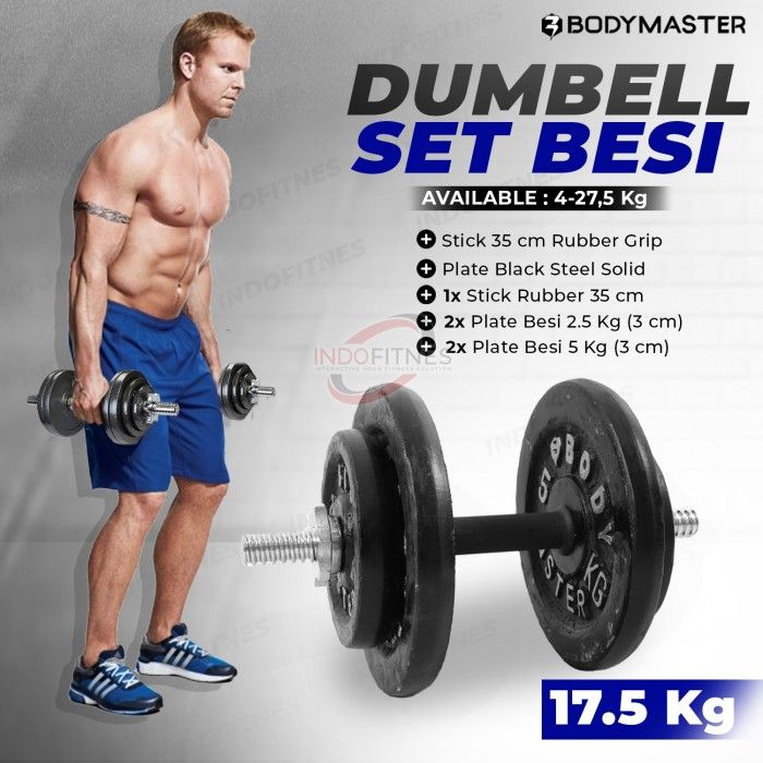 [175KG] Dumbell set besi 175 KG - Paket Stick + Beban Barbel Dumbel