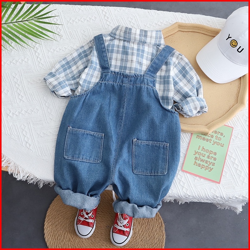 Brownieground Setelan Baju Anak Jumper Kodok Biru Usia 6 Bulan - 5 Tahun Baju Kotak Anak Laki Laki Premium Stp-0541