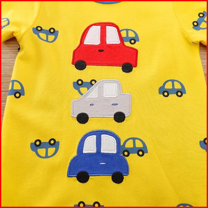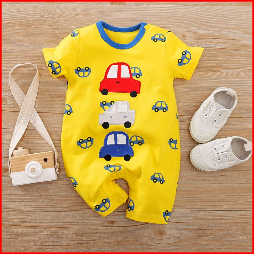 Jumper Bayi Laki-laki Lucu Motif Car Yellow Usia 0-18 Bulan Pakaian Lengan Pendek Baby Boy