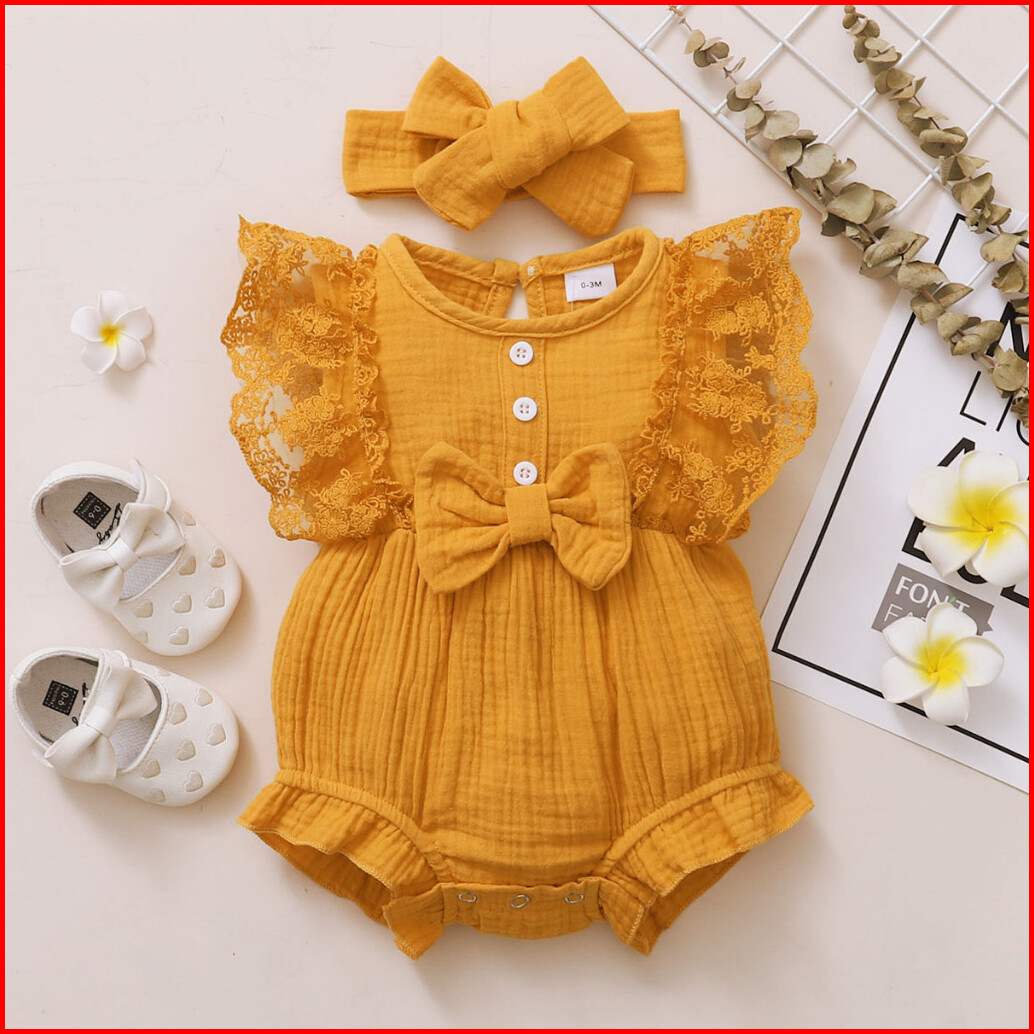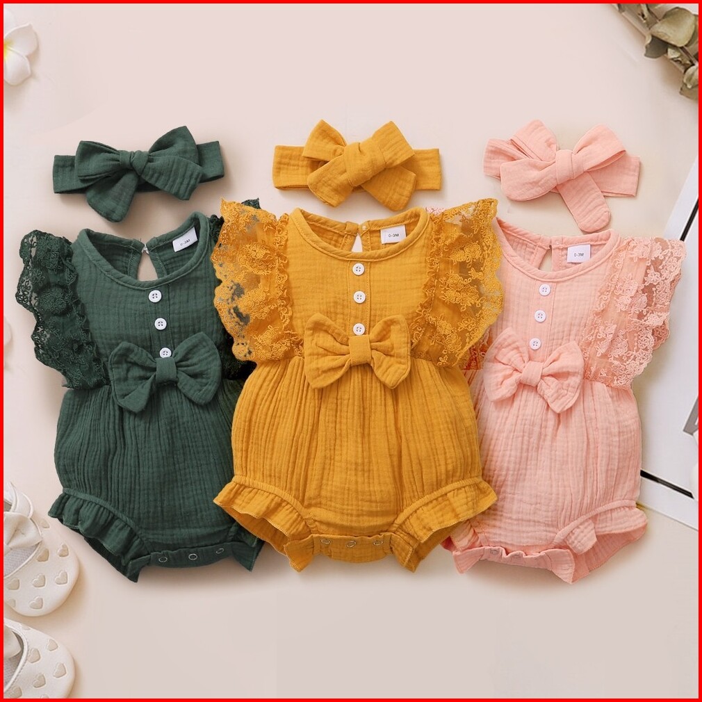 0-18months Baby Raya Newborn Baby Clothing Baby Girl Romper Lace Solid Color Sleevesless Costume Infant Baby Girl Bodysu