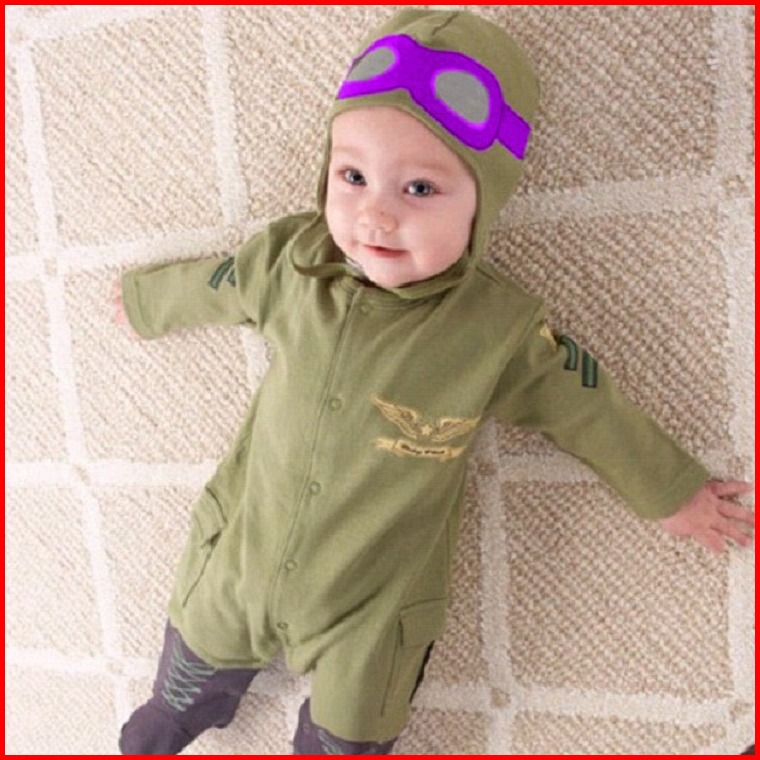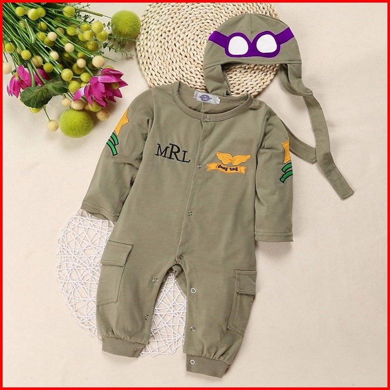 Bibub St6 - Romper Bayi Fashion Baby Laki Laki Gaya Soldier Tentara Jumpsuit Bayi Dengan Kupluk