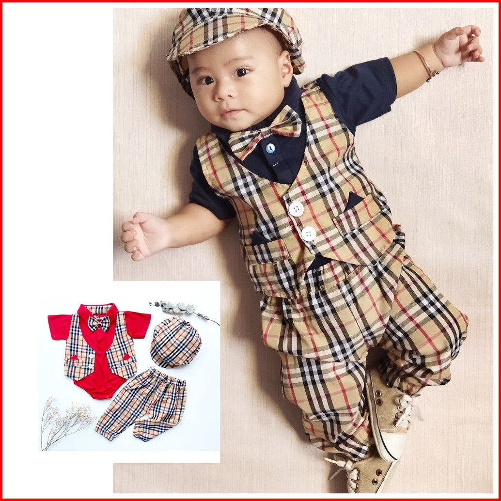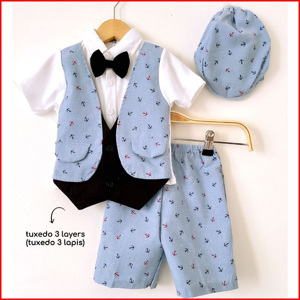 Jas Jangkar Anak Bayi Mewah Tuxedo Set Baju Kemeja Topi Jumper Celana Setelan Pergi Jalan Lucu Fashion Anak Bayi Cowok L