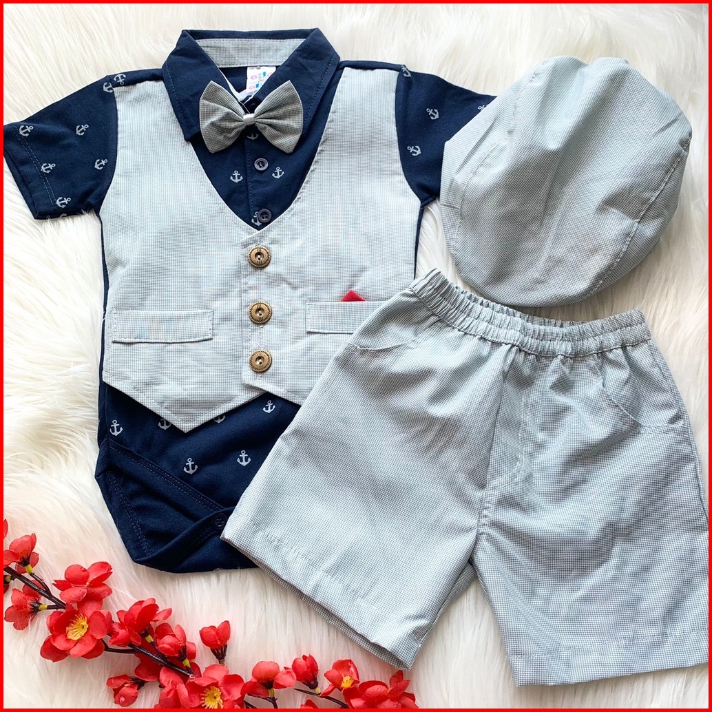 Baju Setelan Jumper Celana Rompi Nyambung Pergi Jalan Bestseller Anak Bayi Cowo Laki Murah -cha