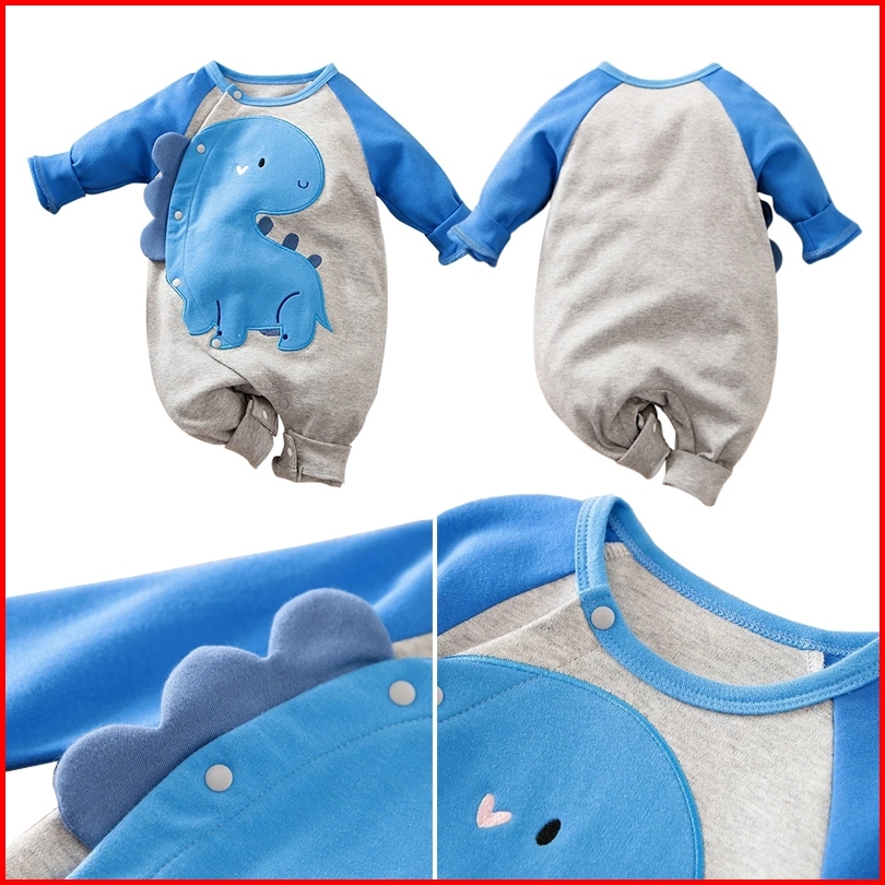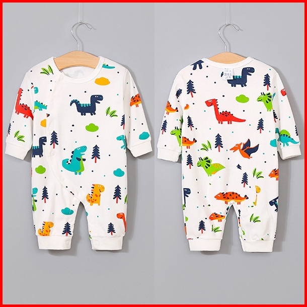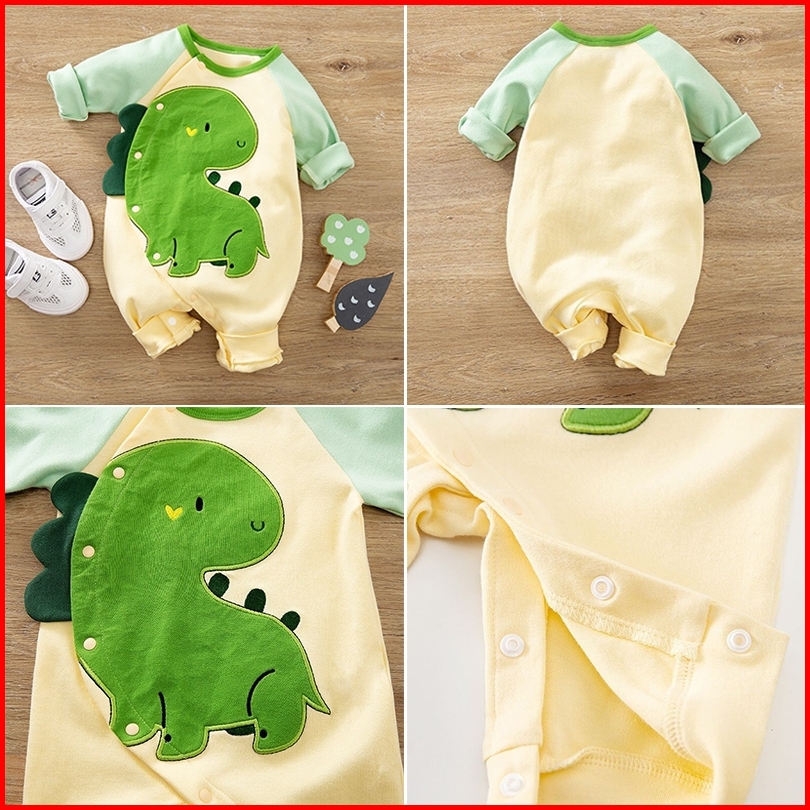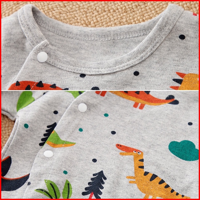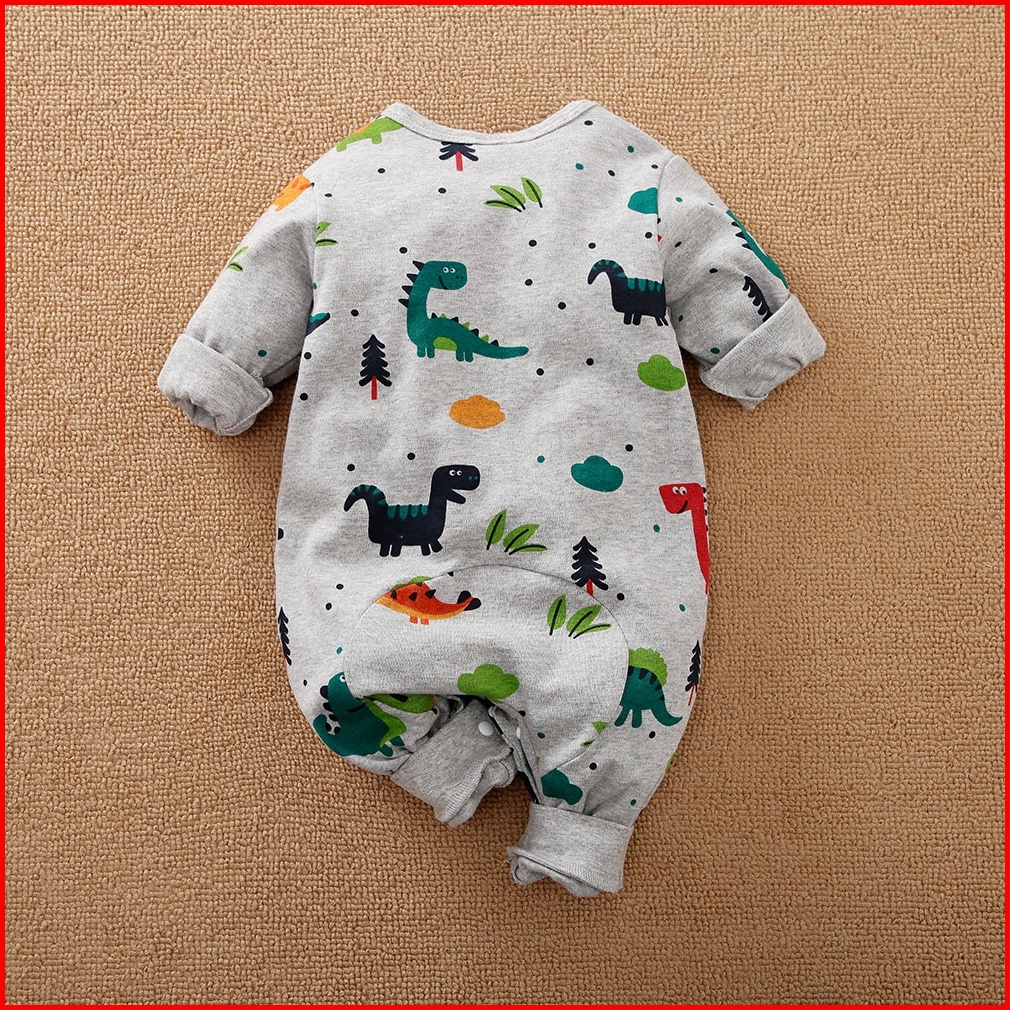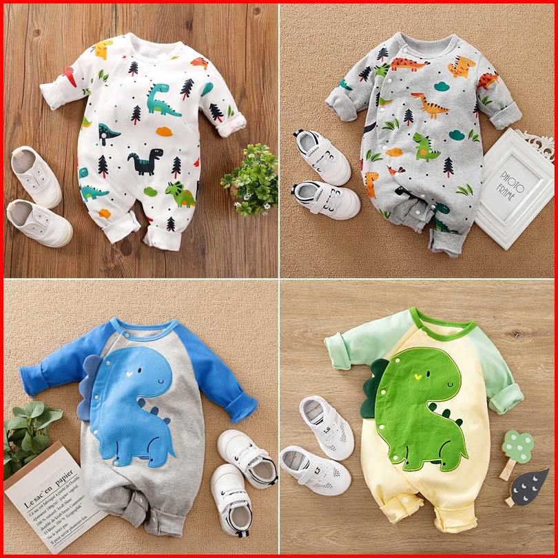 Jumper Romper Panjang Bayi Kancing Baju Kodok Terusan Dino - Dinosaurs Newborn Baby Jumpsuit