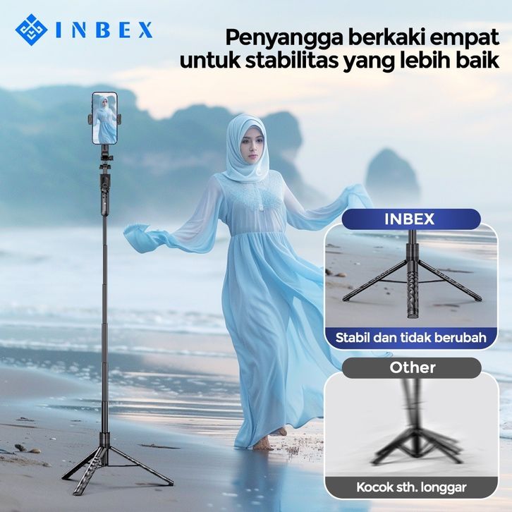 INBEX IB-4 Tongsis Tripod Bluetooth Remote AluminiumSelfie Stick Stabilizer Handphone Hp with Light