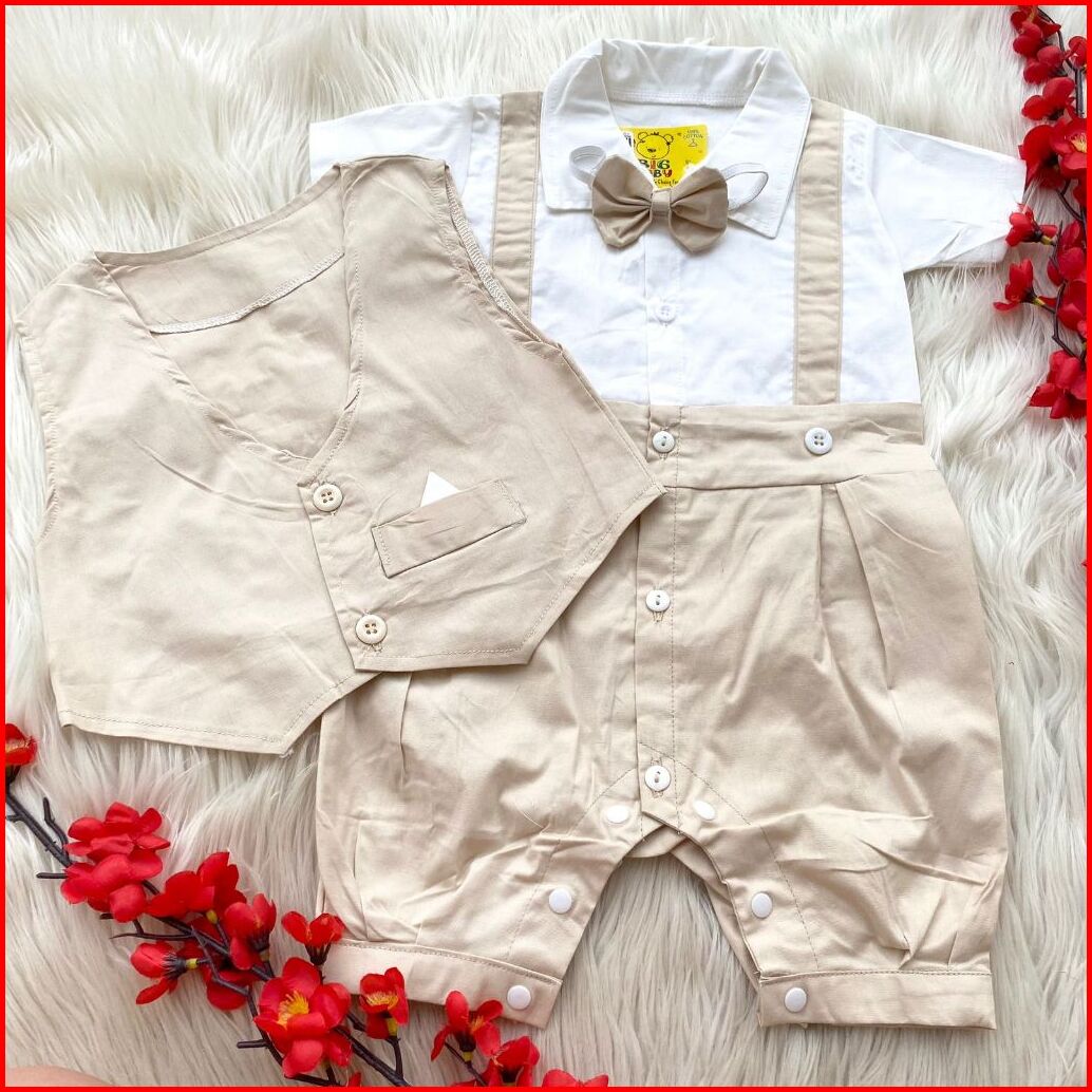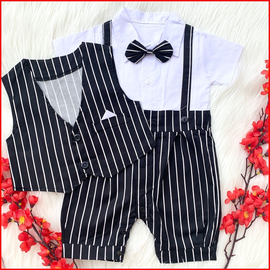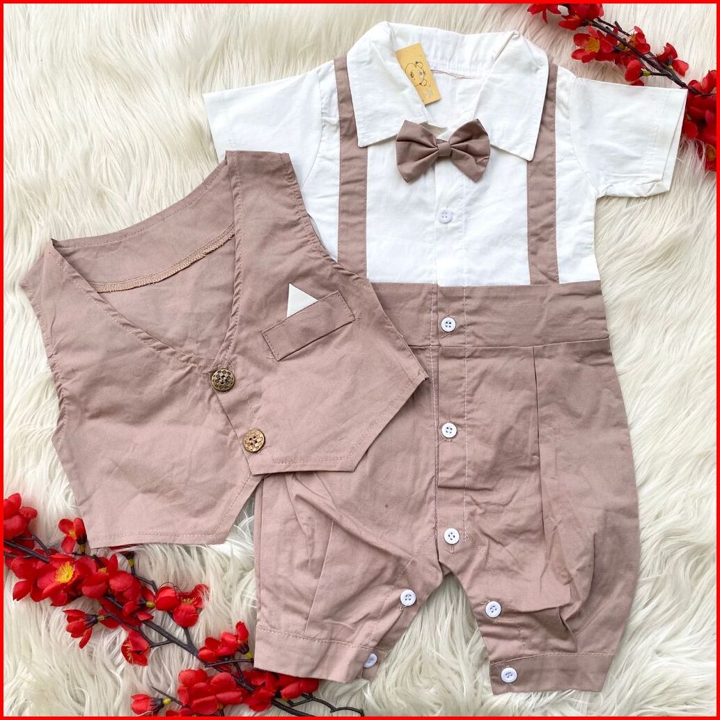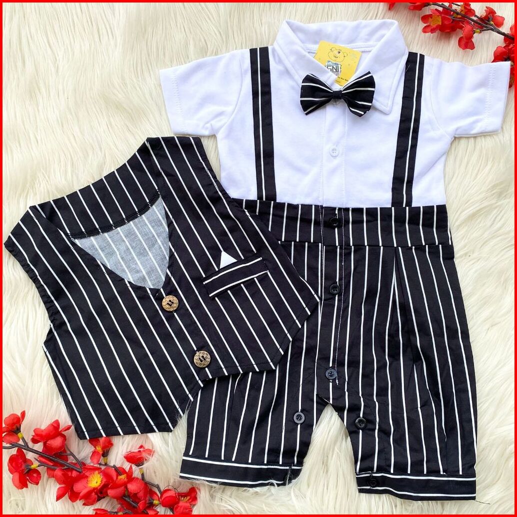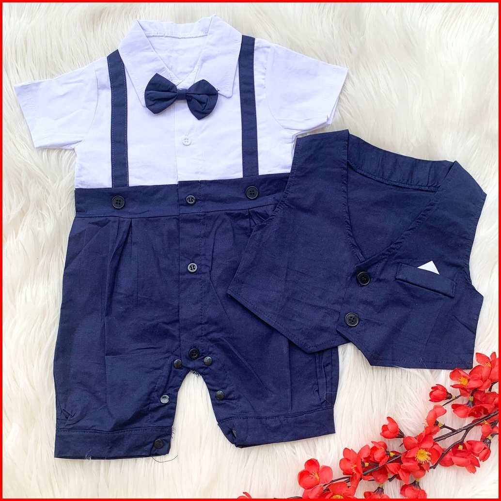 Baju Setelan Kemeja Rompi Sambung Celana Biru Pergi Fashion Anak Bayi Cowok Laki Baby Boy Murah -den