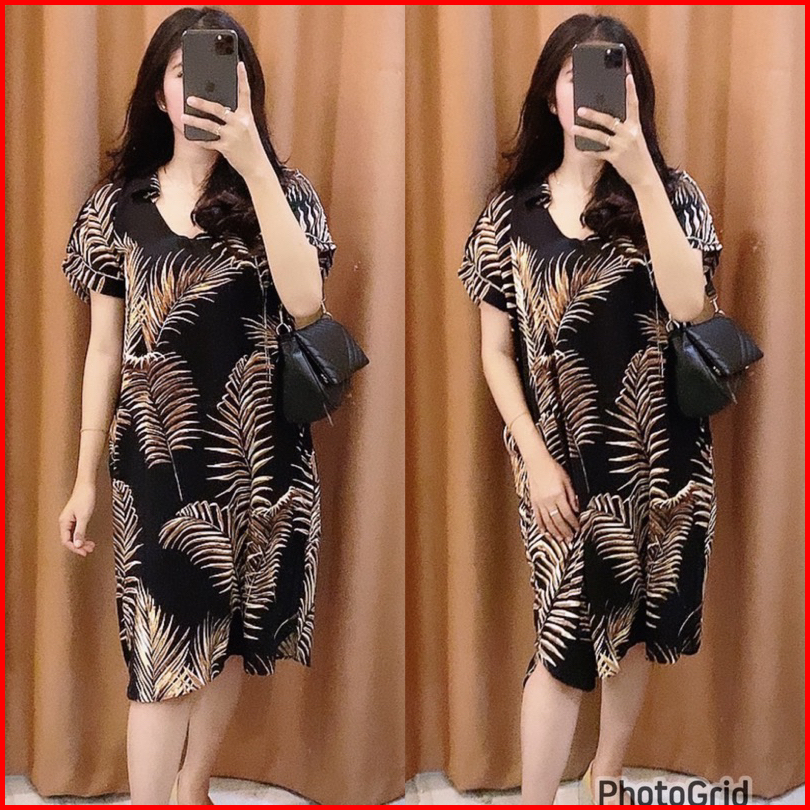 Daster Vneck Kerah Mididress Bahan Rayon Viscose Adem