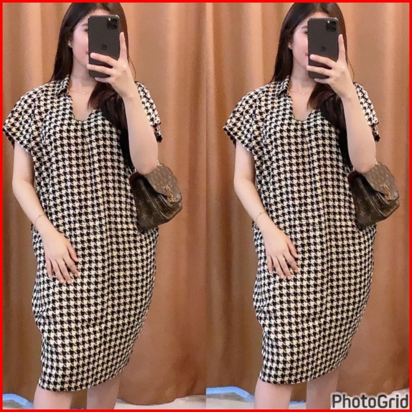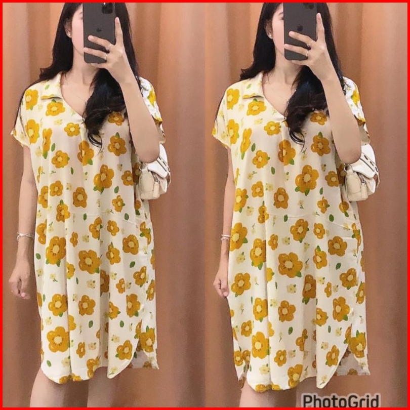 Daster Kerah Vneck Midi Dress Viral Rayon Premium