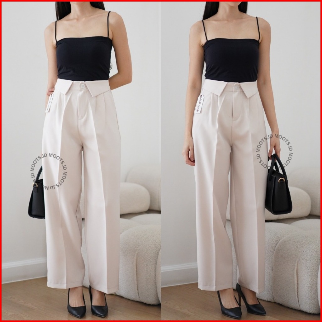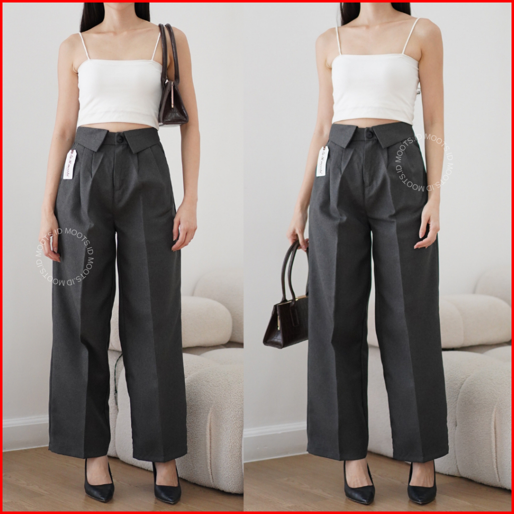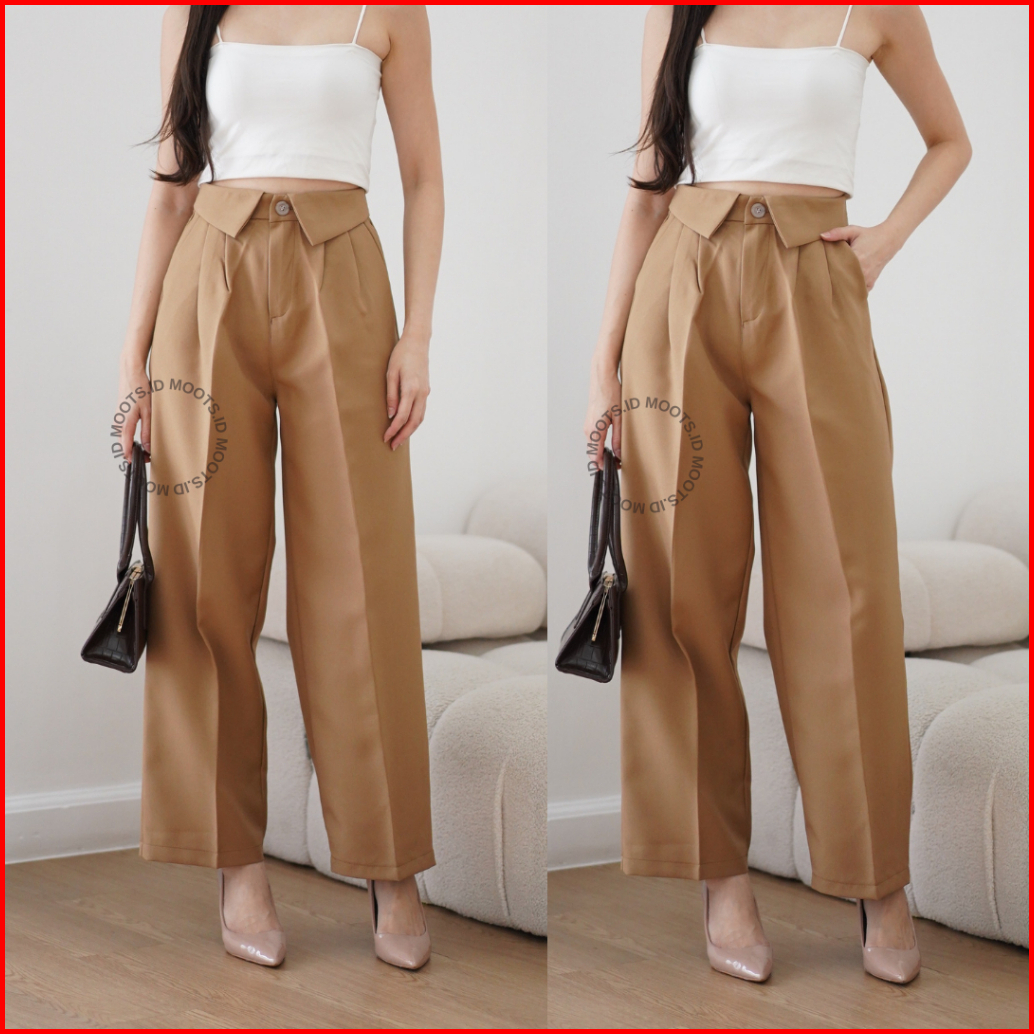 Joy Pants - Celana Kulot Highwaist Trousers Loose Pants - Kulot Anti Kusut - Celana Kantor Wanita Semiwoll